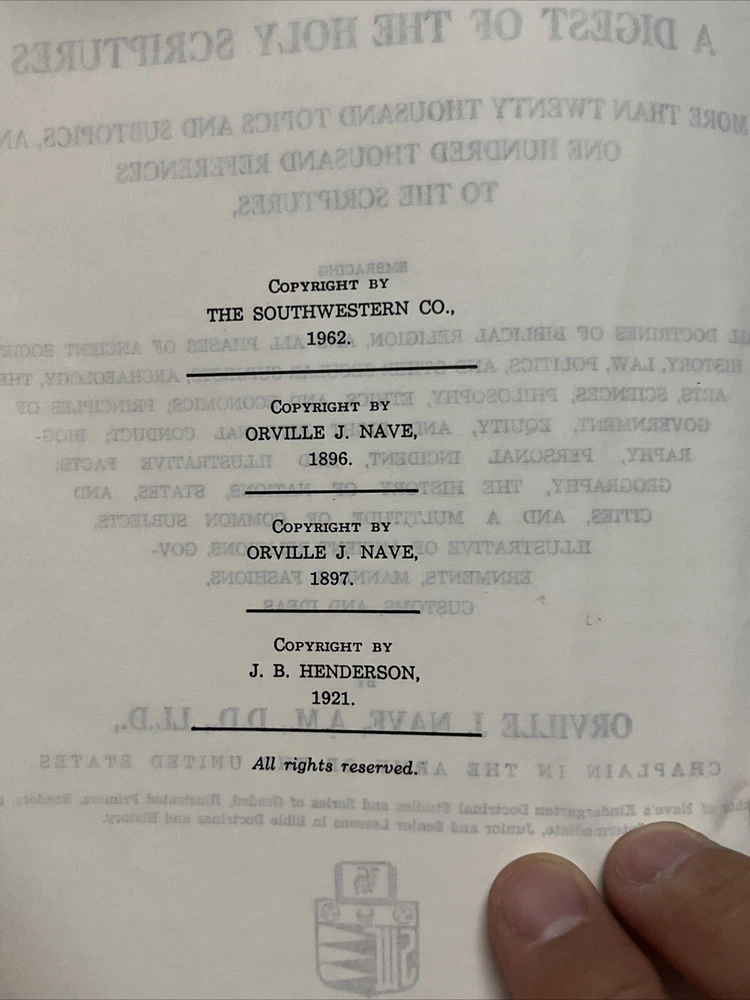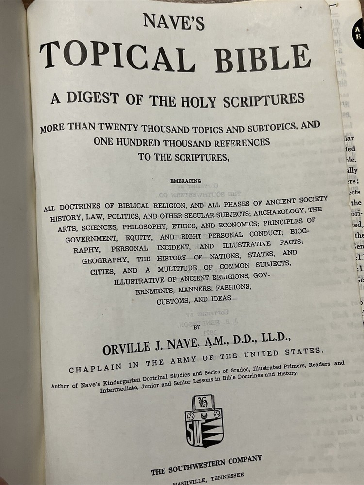Nave's Topical Bible Black Leather Southwestern 1962 Thumb Index **USED** Nave's Topical Bible Black Leather Southwestern 1962 Thumb Index **AS IS CONDITION - please refer to photos** Please look at all photos and ask questions before bidding/buying.