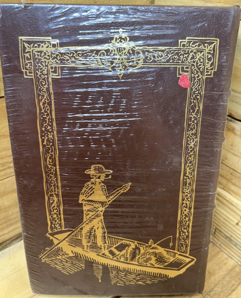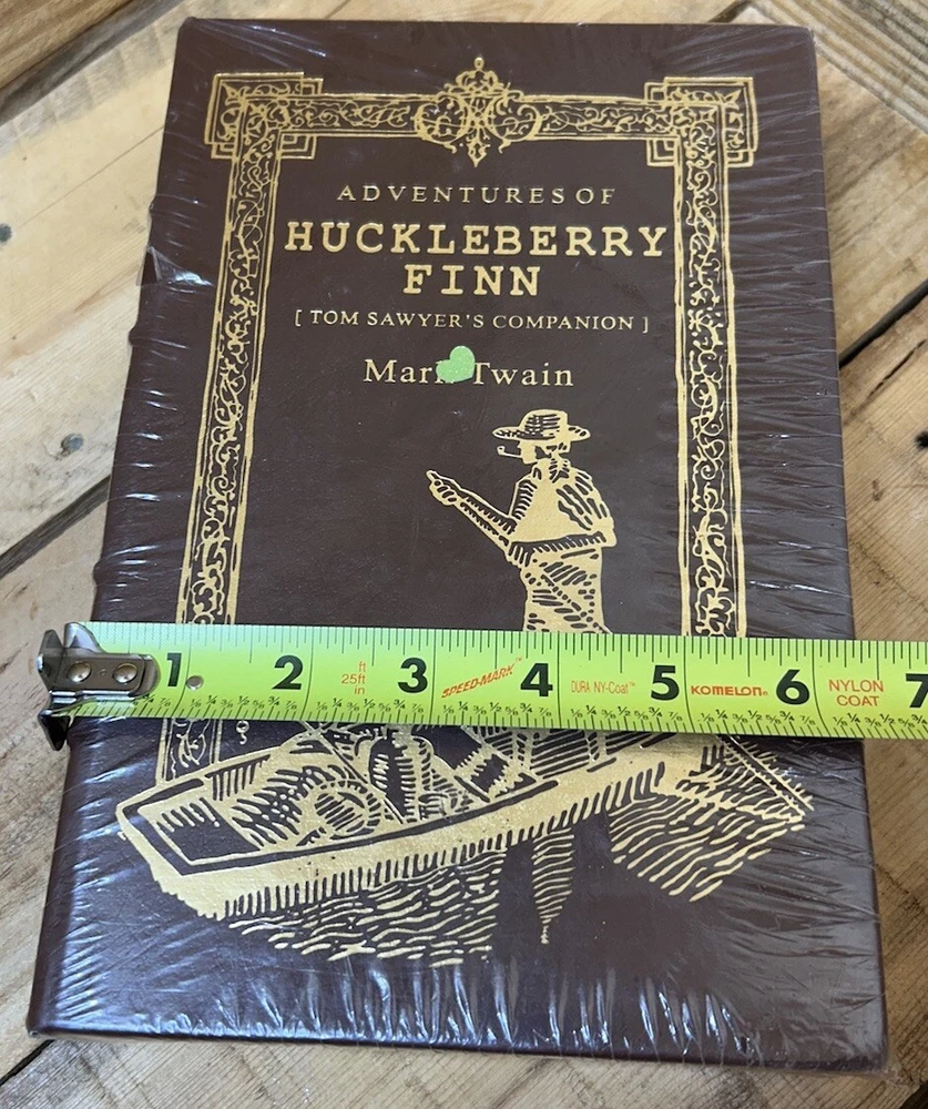 This is a rare and highly sought-after collector's edition of Mark Twain's "New Adventures of Huckleberry Finn". The book is bound in genuine leather and features acid-neutral paper, archival paper, and illustrations by Thomas Hart Benton. It is a part of the Easton Press 100 Greatest Books series and is a genuine gem for any literature and fiction enthusiast. The book was printed in 1994 in Norwalk, Connecticut, and is an original edition. It is not personalized and does not bear any signature, but it is a fantastic addition to any collection. The book is perfect for those who love action and adventure topics and is a must-have for any Mark Twain fan. Book is still wrapped in plastic.