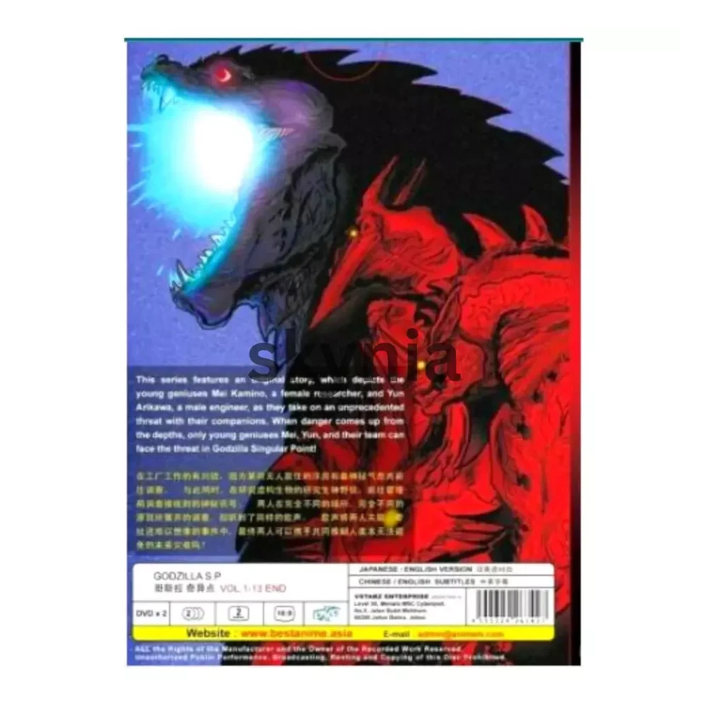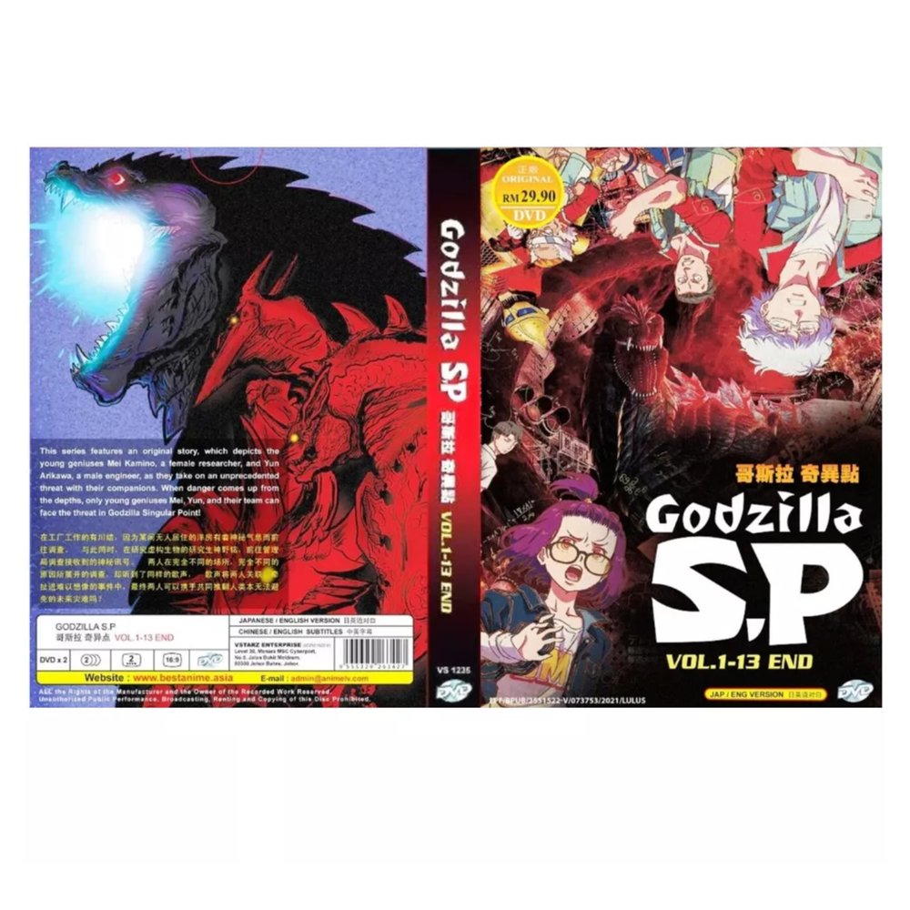Free eBay listing template designed by dewiso.com GODZILLA SP DVD Vol 1-13 End *SKCT-10313381* Item Description DVD Anime Godzilla Singular Point SP (Ep. 1-13 End) All Region English Dubbed a.k.a Godzilla: S.P ゴジラ S.P <シンギュラポイント> Episodes: 1 - 13 End Version Audio : Japanese / English Subtitle : English / Chinese Condition : Authentic Brand NEW, Original Factory Sealed. Region : ALL Region / Region Free No of Disc : DVD 2 Pieces Features and further details Synopsis This series features an original story, which depicts the young geniuses Kamino, a female researcher, and Yun Arikawa, a male engineer, as they take on unprecedented threat with their companions. When danger comes up from the depths, only young geniuses Mei, Yun and their team can face the threat in Godzilla Singular Point!. Begins in Japan, in the year 2030. Yun Arikawa and Haberu Katō, two workers at the “do-it-all” Otaki Factory, are hired to investigate strange power fluctuations at an abandoned mansion. They find a hidden radio that's picking up a repeating broadcast, which Yun identifies as an old Indian folk song, and trace it to a radio-monitoring station called Misakioku. Meanwhile, graduate student Mei Kamino is brought in to investigate a strange alarm at Misakioku, and discovers that the alarm is connected to the same broadcast. Mei is later contacted online by a copy of Naratake, a popular AI created by Yun, which she renames "Pelops II". Yun and Haberu’s boss, eccentric scientist Goro Otaki, theorizes that Misakioku and the broadcast are part of SETI and are connected to alien activity. Gorō publicly unveils his newest creation, a giant robot called Jet Jaguar, at a local festival, but the event is thrown into chaos when a pterosaur-like monster called Rodan suddenly appears. Meanwhile, it's revealed that the secret basement of Misakioku houses the skeleton of a giant creature. Contact us We can be contacted at any time through eBay messages if you have any questions, comments or product requests. We will respond to you within 24 hours and do our best to help you out! We encourage our customers to contact us with any questions or concerns! We'd like to be sure you are completely satisfied with your purchase. Payment All payments will be managed thru eBay Managed Payments Shipping We provide free shipping. ETA within USA region is within 3 to 9 business days. We're using USPS First Class. Disclaimer We accept return of unbroken/unsealed product within 30 business days of your received date. Please contact us before leaving negative feedback. We will be glad to resolve any issues. Your positive feedbacks are greatly appreciated