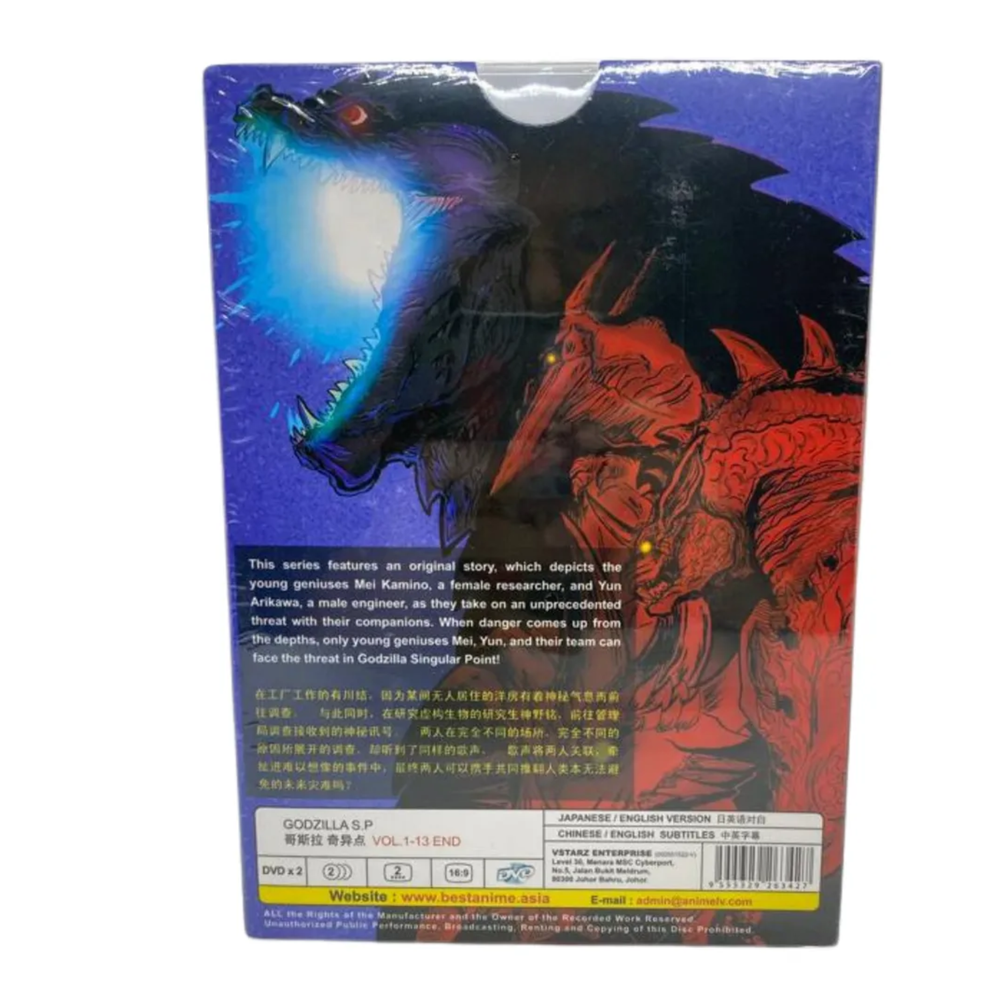 Absolutely thrilled with this Godzilla SP DVD set! The English dub is crisp, and having all 13 episodes in one collection is a huge plus. The animation is stunning, and the story stays fresh with its unique take on Godzilla lore. Came brand new and sealed, plays perfectly on my region-free player. The dual audio and subtitles are a nice bonus for fans who prefer the original Japanese. A must-have for any kaiju enthusiast!