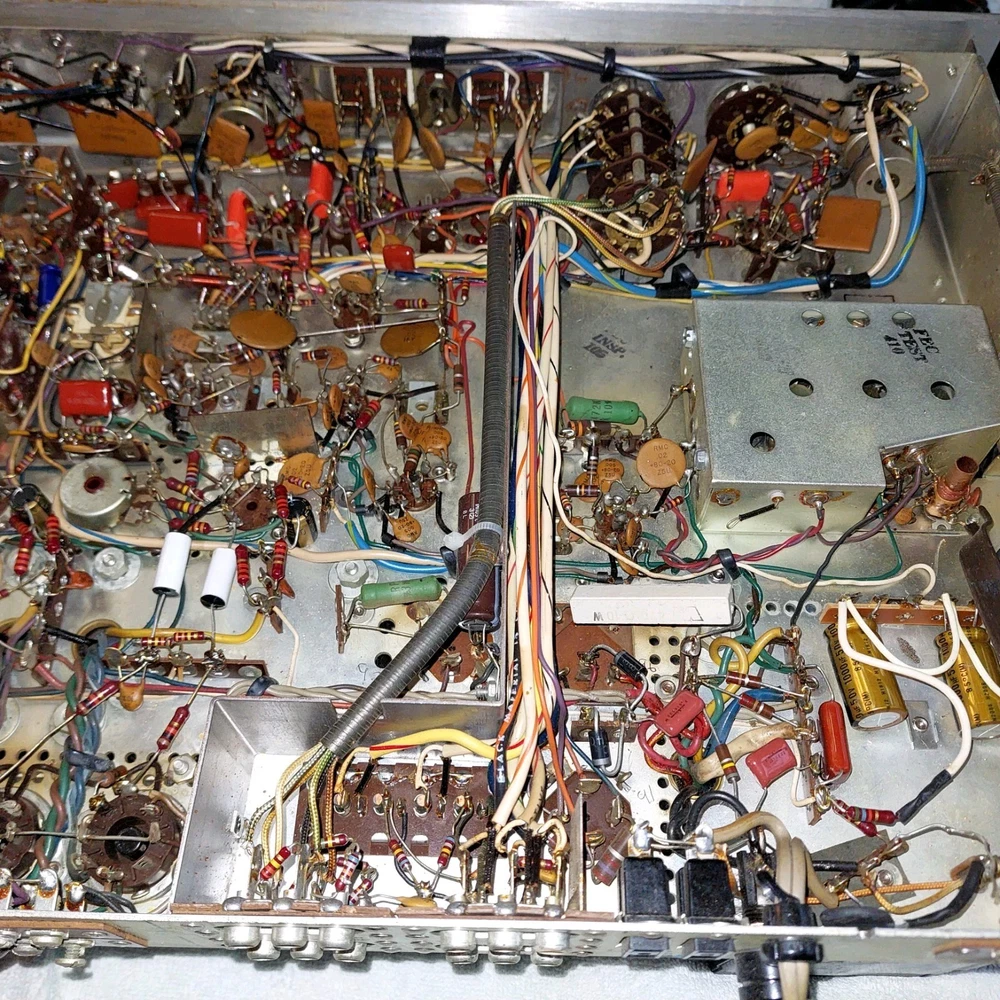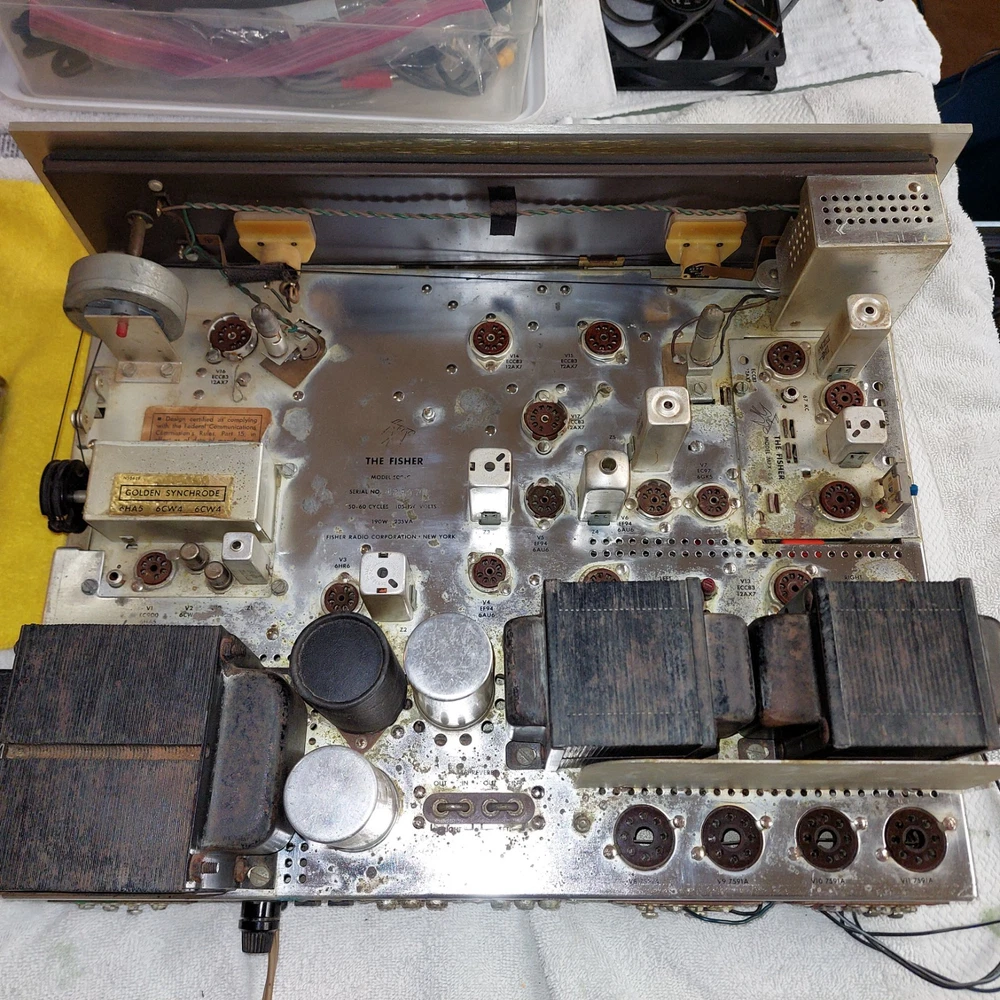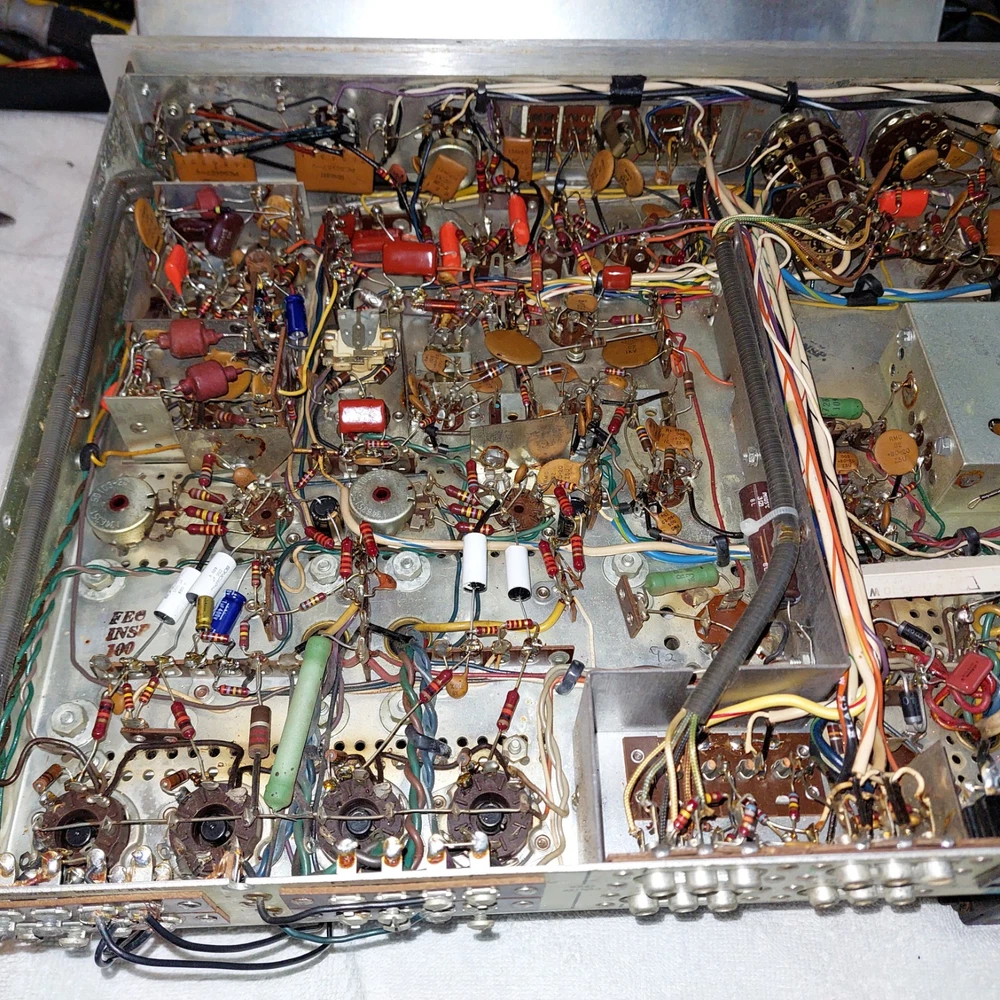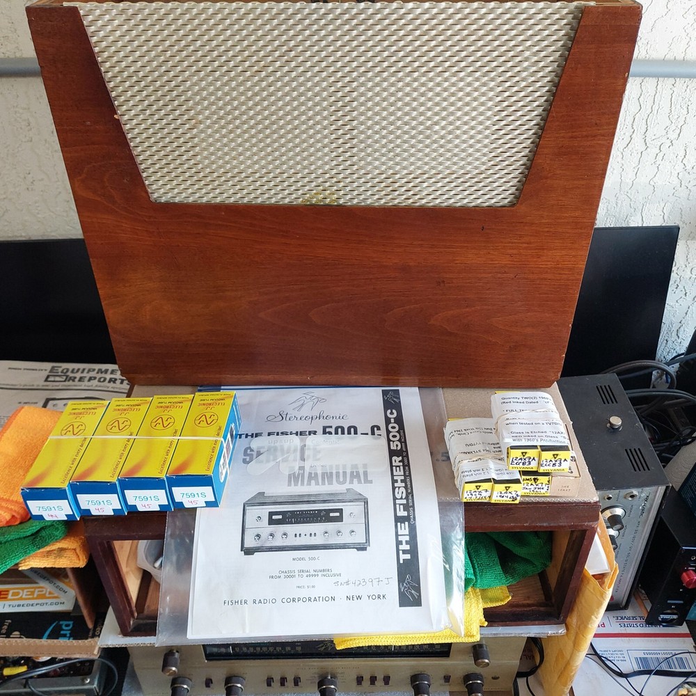 **** FREE LOCAL PICKUP with Demo before Purchase, by Appointment ***** **** Pickup in Cutler Bay, FL. 33190 (Miami-Dade County) **** THIS UNIT IS CROSS LISTED On Multiple Sites*** **** SHIPPING TO USA lower 48 States ONLY To eBay Verified address NO PO BOXES , *** 3 shipping options Economy USPS,UPS,FedEx, Insured, Adult Signature required upon delivery. Pick the lowest cost rate to your zip code and we will make it happen. PLEASE READ THIS ENTIRE DESCRIPTION BEFORE YOU BUY. Ask Questions before you buy. We respond to eBay msgs quickly. This is a Very Long Detailed Description ( NO A/I listing descriptions used here ) ONE(1) FRESH Electronic Restoration 1965 Fisher 500C FM MPX Stereo Tube Receiver with 21 tested tubes (17 are USA vintage tested tubes SN# 42397J (Production of the Fisher 500-C ca. late1963-early1967). Unit will come with Printed copies of 3 Fisher 500-C Service manuals( all SKU's , parts list, trouble shooting tips ect. and Fisher 18 page User/Operation/Setup Manual with Diagrams and full Operating Specs. Included Excellent Condition Original Fisher Cabinet. Vacuum Tubes: 4x New Matched quad JJ 7591S, 9x12AX7/A (8 are Vintage 1959-64 Balanced Sylvania tested very strong on a recently calibrated TV7D/U at or above Factory NOS levels+ 1 strong balanced GE 12AX7A early 1960's) Many of the remaining 7-pin radio (RF/IF) frequency receiving tubes are the original 'The Fisher' tubes all retested very good. All Tubes made in USA except 7591S JJ in EU-Slovenia. The Fisher cabinet is structurally sound and looks Good, It has a few scratches in the wood grain and a couple minor veneer wood chips pieces missing toward the back side (as seen in pics). We have applied several coats of Tung-Oil to the cabinet and it currently looks presentable especially from the front & top viewpoint when placed on an audio rack. The FM MPX-65 Multiplex on-chassis decoder was removed, rewired and rebuilt to Factory SKU Specs. This units Radio FM Mpx both in Multiplex Stereo & in FM Mono Circuit is one of the best well-balanced and strongest FM reception that I have heard in a receiver. The FM line level signal strength & reception is very strong in this receiver as I tested it all Day listening to my favorite local Jazz station WDNA here in Miami both with 16ohm speakers and with a pair of vintage Sony Headphones with a new simple inexpensive Dipole FM antenna (this antenna will be included in the box shipped). The headphone circuit works very well, All input device circuits are working well Line level: AUX/CD, Tape Monitor, FM Mono,FM MPX Stereo, FM Auto, Low Level Inputs: Phono High-Level & Phono Low Level working well Notes: Our 50years+ exp. with Cabinets/Cages/Covers/Consoles enclosures : ( cabinets, metal cages and Console Enclosure hinder air-flow and as such your tubes will only generally last 1/2 as long. So we suggest operating this Fisher 500C outside of its cabinet for daily use. We also suggest using all tube audio units in operation without covers. Additional we suggest using a high quality computer fan behind these tube type receivers to dissipate vacuum tube heat. In 2025 a NOS vintage tube complement(21 tubes) in these units cost was much as the units. 'A Light that burns twice as bright( Hot ) burns 1/2 as long' . Please Follow this suggestion and Your tubes will love you! ). For Shipping: This unit will be mounted securely in its original wooden cabinet and wrapped very well after we pull and pack all tubes carefully inside a separate box. This Unit&Cab, Tubes and all Docs with this printed description will then all be packed into a New Heavy Duty ULINE/UHAUL Small Electronics box 20"x20"x10" all 6 sides will have ample thick Styrofoam padding. Restoration work done to Factory Specifications. Full Details of restoration are below: About us: We are Honest Sellers and Great Communicators 27+year seller to Happy Customers on ebay with 100%+ feedback on Vintage Electronics[Tubes, Amps/PreAmps/Receivers/Radios/Speakers and other tube type audio Gear): We have sold analog tube audio units since PRE-Ebay DAYS from the late 1970's. Please read our feedback from very recent sales of Tube Audio PreAmps ( Dyna PAS-2, Valve Audio Labs MP-L1S MKII ), Receivers( Fisher 400), Int Amps (Harman Kardon A30K/A300, Eico ST-40), Tube Type Analog Tuners(AM/FM) stereo Radios( SCOTT LK-10 Stereomaster MPX). Please contact us before you purchase if you have < 10+ feedbacks. Our buyers tend to be higher-end audiophiles and audio collectors. We always welcome 'newbies' to the tube audio world but if this is your 1st tube amp purchase please have a friend who has exp. with tube audio to help and assist you in setup and proper connections. Our 50+yrs exp. in vintage tube audio gear indicates that 99% of all issues can be resolved by "Reading the User/Operations Manual 1st to insure proper setup, connections & grounding( hum-noise issues). This unit comes with all extensive published docs, Installation User Setup and Operation, All Tech Specs, -Freq Response Graphs, Fold-out SKU's, Full Parts List, many Diagrams + MUCH MORE. UPFRONT DISCLAIMER : Unfortunately Due to Past experiences with certain eBAY buyers 'bad apples' who SWAP OUT PARTS AND TRY TO RETURN BANDITs from ebay audio units sales that we have honestly described for tube audio units We are only offering: "NO DOA"-NO Dead on Arrival - Working as Described and as Tested before shipping: " - SOLD FOR PARTS AND FUTURE REPAIRS WHEN AND IF NEEDED. ALL SALES ARE FINAL WITH NO RETURNS AND NO REFUNDS AND NO WARRANTEE - Please READ FULL DESCRIPTION below" . ALL PARTS AND TUBES ARE MARKED and IDENTIFIABLE in PICs and PCB boards and chassis assembly marked Invisible uv inked. Notes when buying Used Electronics : When buying 60+ plus year old electronic equipment that has not had all parts replaced with new parts there is always the possibility with failure to the 60+ year old part/s at any time. Some of the electronic part/s may continue for another 60 years witho
