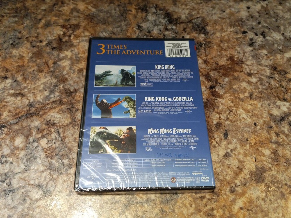 Immerse yourself in the epic world of King Kong with this new and sealed triple feature DVD set. This box set includes the classic films King Kong, King Kong vs Godzilla, and King Kong Escapes, all in a tall DVD case. Rated PG-13 and featuring captivating cinematic movement, these B-movie and cult classics are perfect for any fan of creature/monster movies, adventure, and fantasy. Directed by Peter Jackson and featuring an all-star cast including Andy Serkis, Jack Black, and Adrien Brody, this box set also includes special features like captioning and widescreen format. The films are in DVD format with a region code of 1 for US and Canada. Get lost in the thrill of the escape, mystery, supernatural elements, and fast-paced action of these films.