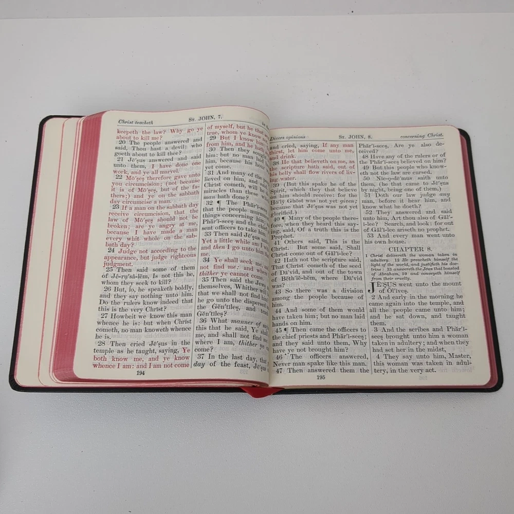 The product is a vintage leather-bound edition of the New Testament and Psalms, with red letter text. The Bible is in a very good, clean condition. Please see the images of the actual item for sale....