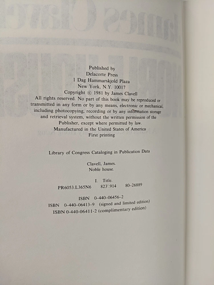 leatherbound edition, SIGNED limited edition, limited to 500 copies, copy #295, signed by James Clavell, slipcase in very good condition, Delacourt press, 1981, 1206 pages,