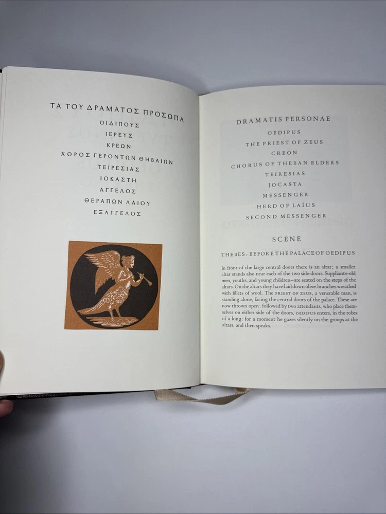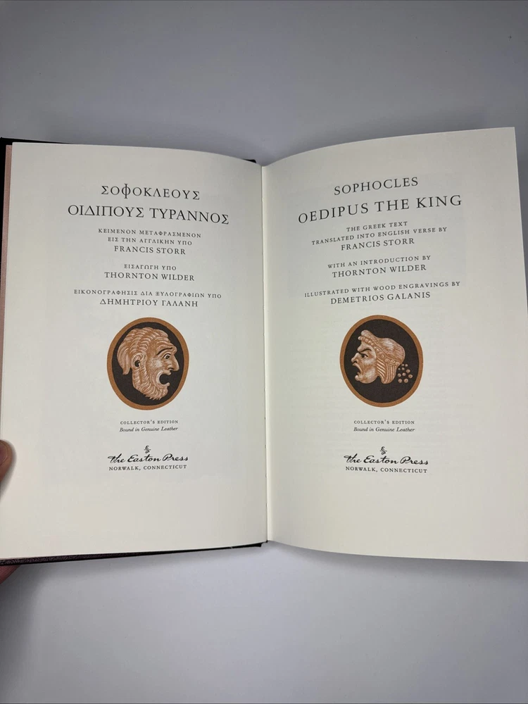 PLEASE REVIEW PICTURES BEFORE PURCHASING - BOOK IS IN GREAT CONDITION! Please note: is a slight tear on one of the pages, pictured above. This is a rare and highly sought-after collector's edition of "OEDIPUS THE KING" by Sophocles. Printed in 1980 by Easton Press, this hardcover leather book is one of the 100 greatest books of all time. The book is in its original form and is in English language.