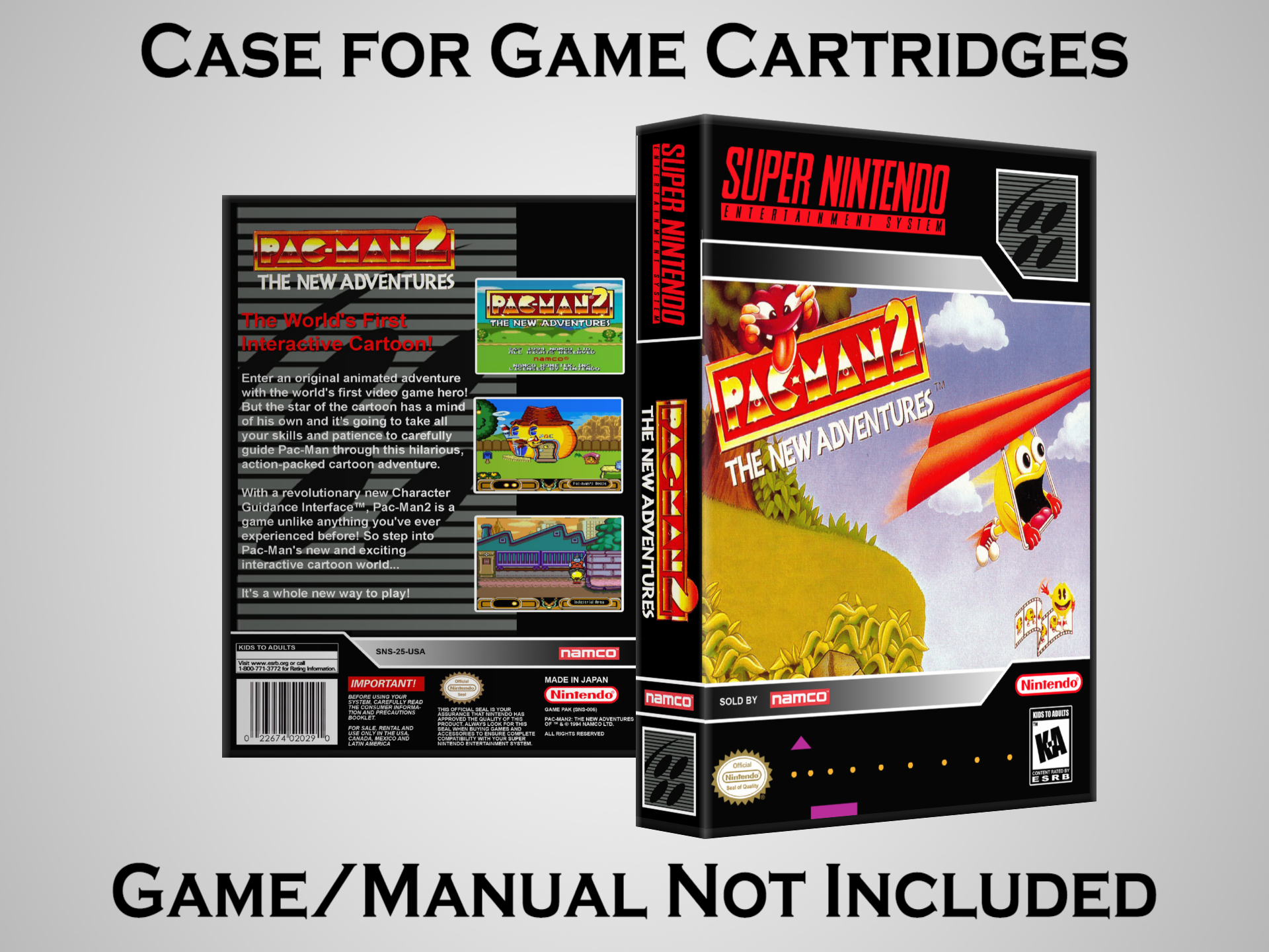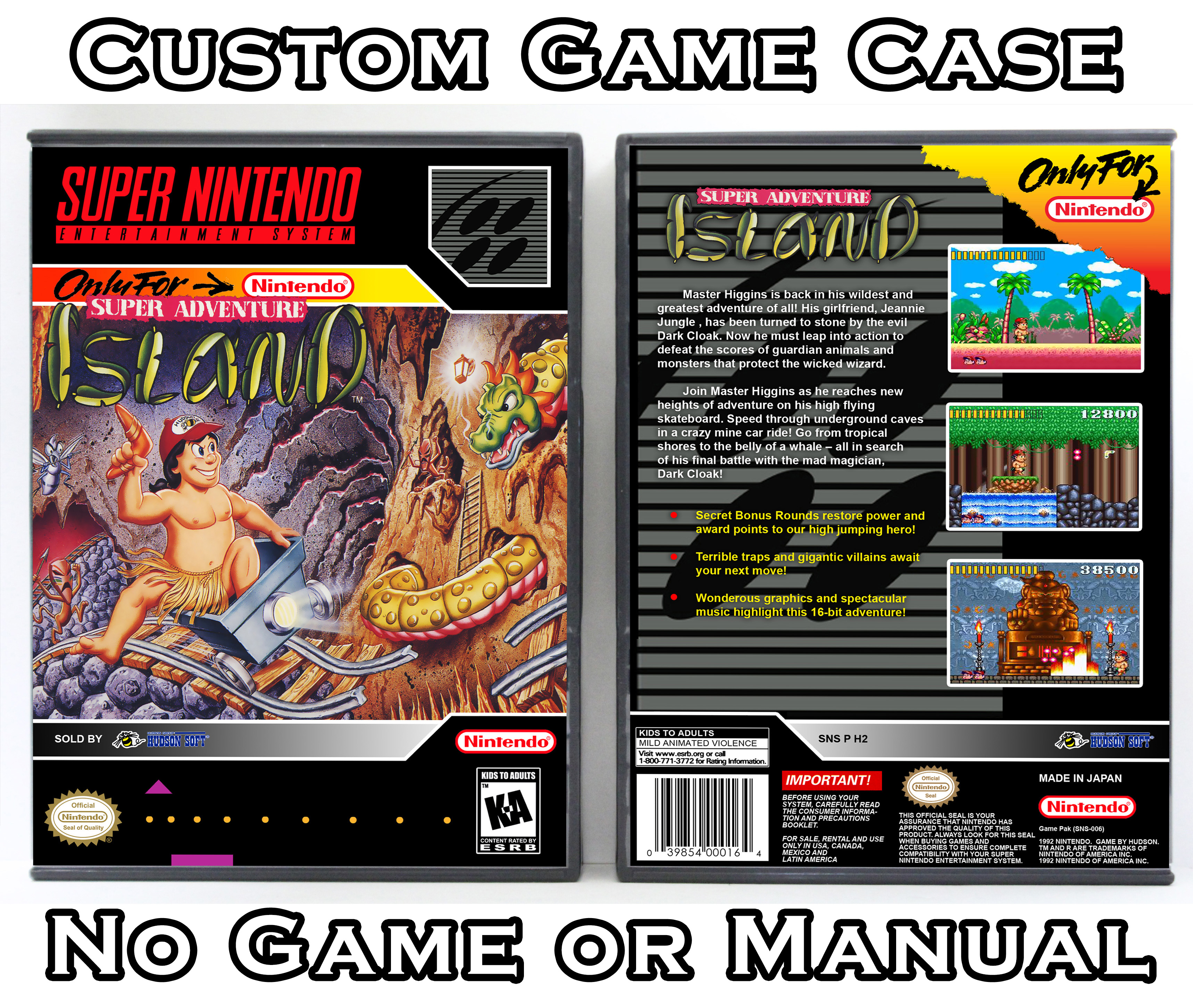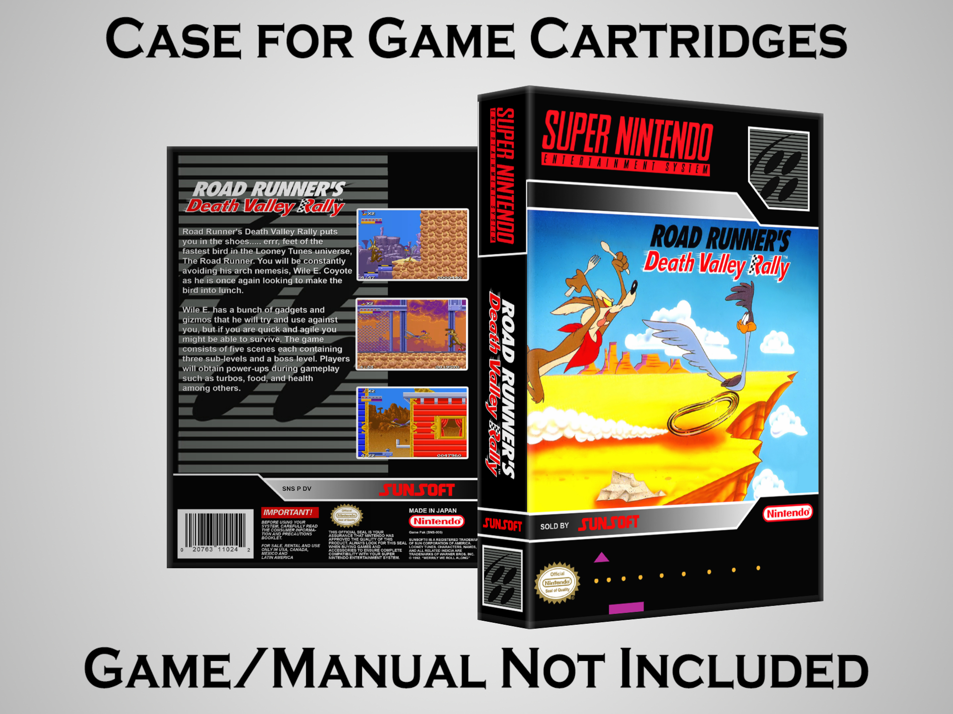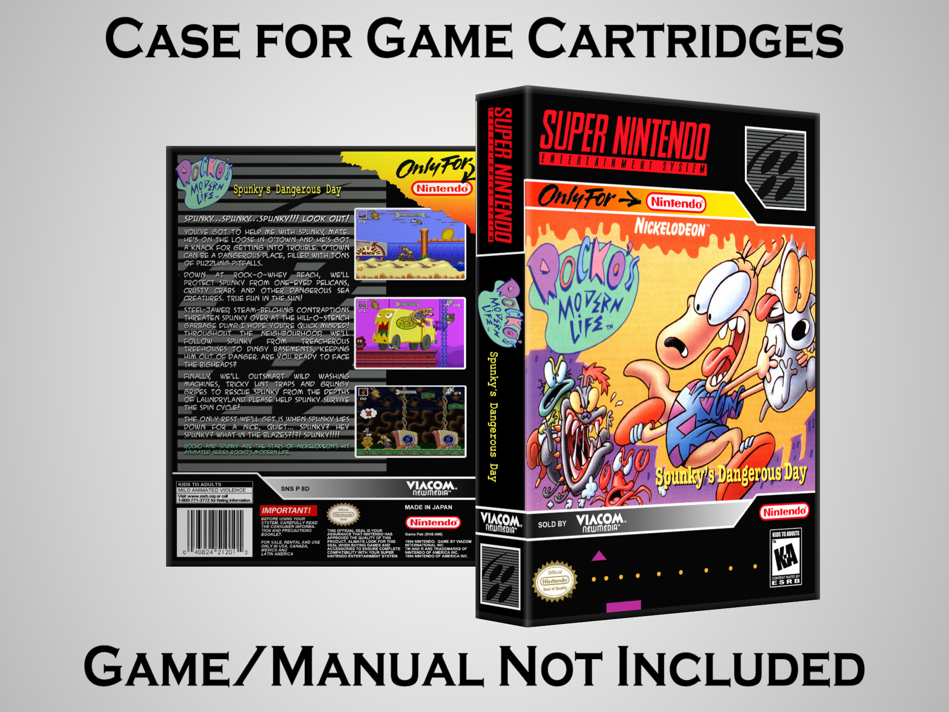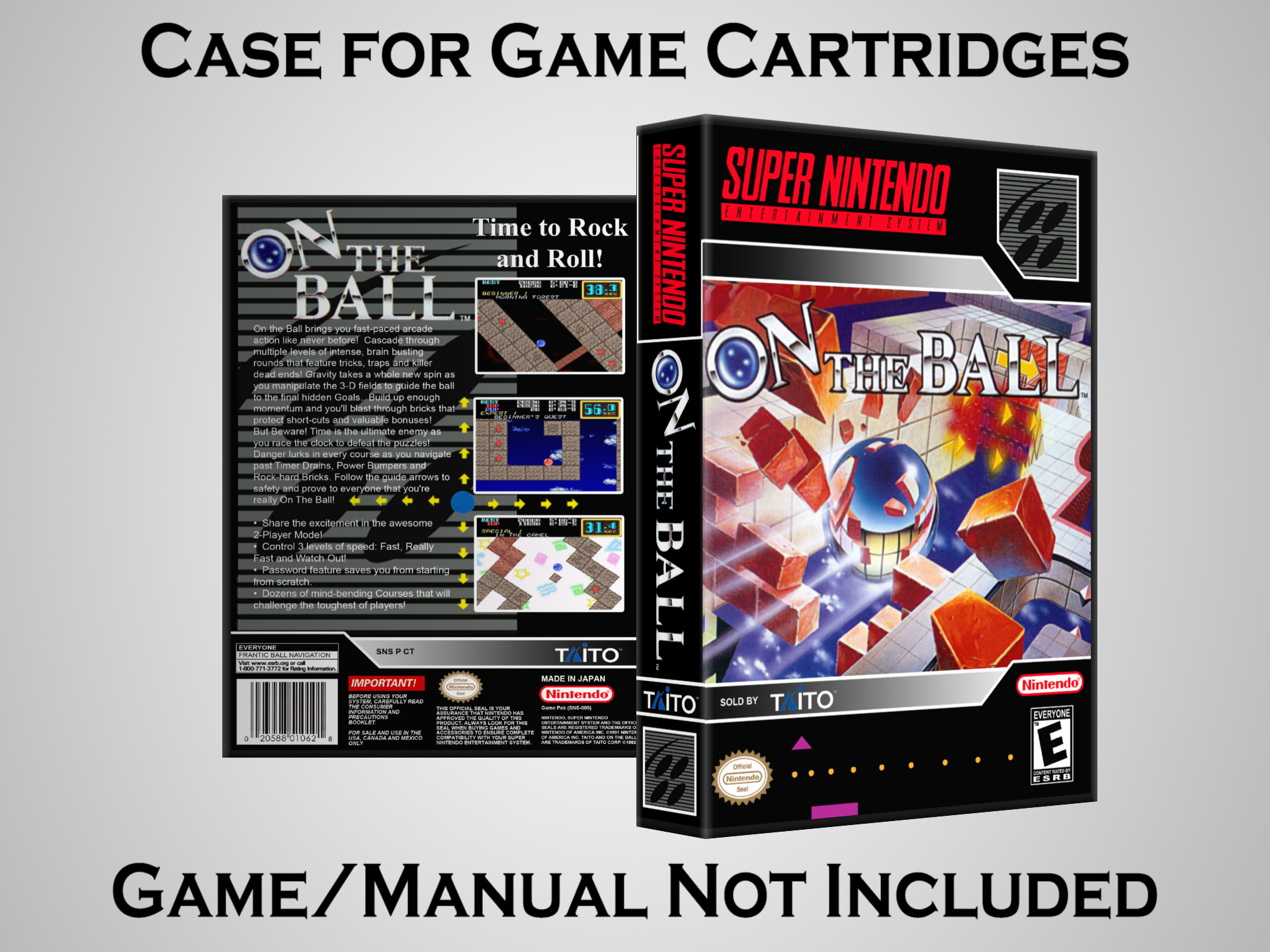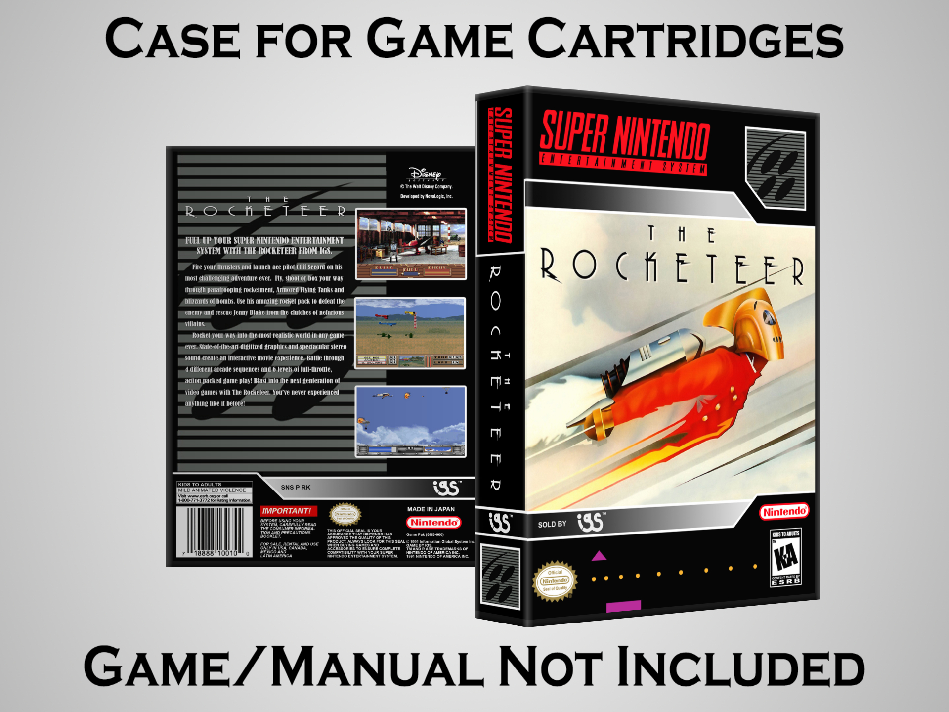 NO GAME OR MANUAL IS INCLUDED! This is NOT an original cardboard box. Case Dimensions : 7.25" x 5.25" x 1.125" Case Color : Dark Grey These cases are designed specifically to hold your Super Nintendo (SNES) cartridges. These are not the low quality Universal Game Cases that most other sellers offer. These firmly hold your cartridges in place, and include clips on the opposite side to hold the instruction manuals if you have them. Our Super Nintendo cases are split into multiple listings alphabetically due to the limit on options in one listing. You can find the rest of our cases in the following links: SNES Cases from # to F SNES Cases from G to N SNES Cases from O to S SNES Cases from T to Z Click here to find more cases in our eBay store!