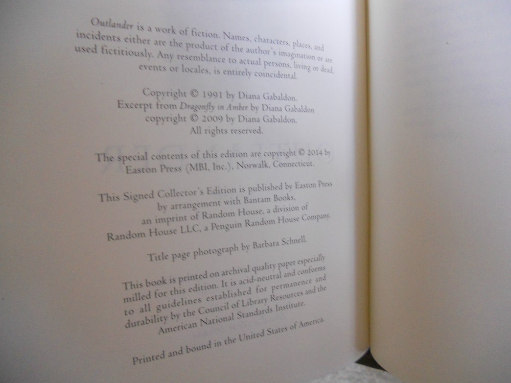 OUTLANDER by Diana Gabaldon, signed 2014 Easton Press This book is in fine unread condition without dust jacket as issued. Leather binding. Removed from publisher's wrap for photographs. Please ask questions or for more photos if needed. Visit our store for more Easton Press titles in Antique/Collectible or Signed Editions or by Diana Gabaldon.
