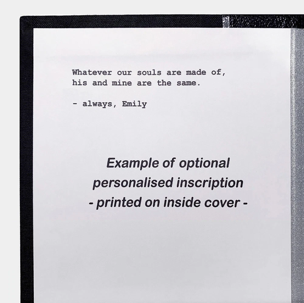A beautiful hardcover book, quarter-bound in leather Raised bands on spine Silver finishing Detailed leatherwork Black and white headbands Traditional spine title Personalised inscription Size 210 x 140mm Price: This listing is for the commission of professional bookbinding work. The all-inclusive price includes the bookbinding fee, the finished product as advertised and tracked delivery. Authenticity: I am a professional bookbinder with over 30 years experience. My commissions and fine bindings are collected all over the world by bibliophiles, book enthusiasts and art collectors. Inscription: Optional personalised inscription on inside cover. Popular examples are Jane Smith December 2023 or Ex Libris Jane Smith or anything up to 250 characters. Ex Libris means from the library of / book belongs to. Your inscription will be positioned and formatted so it looks the absolute best it possibly can. Binding: Presented in black leather and black bookcloth. Text-block: The complete and unabridged published novel. Paperback edition in English language. Bookbinding Commission: The price advertised is the fee for my services as a professional bookbinder, and a promise to deliver your book safely, as pictured* and as described. The book text-block has been paid for by myself, this includes all usual royalties paid in full. The fee you are paying is for the commission of bespoke work, for my expertise in bookbinding. The highly skilled work will provide protection and longevity, there are no alterations to the pages of the published book text-block. *Depending on the number of pages of the published novel, the depth of the book may be different than pictured.