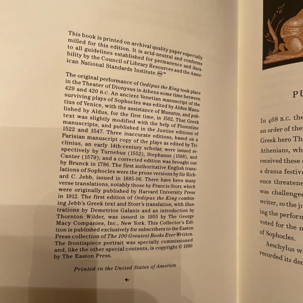 Oedipus The King by Sophocles (Easton Press, 1980) 100 Greatest Books. Shipped with USPS Media Mail....