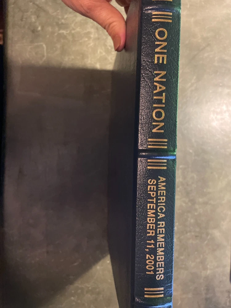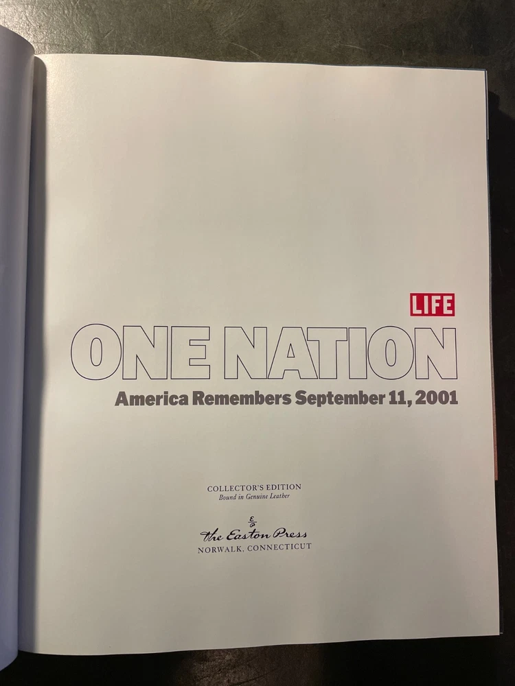 One Nation Special Edition: America Remembers 9/11, Easton Press Leather Bound Edition Condition: NEW Note: Photos are of actual book(s), all original photos, not copied from stock/internet photos. Please look at all photos and ask any questions before ordering. Additional photos can be taken upon request. See photos for excellent condition. >>>TOP Seller Rating 99% Over 4K items sold since 1999 <<< Usually ships next business day from Florida READ READ READ: *** No returns/refunds on Books. *** Please look at all photos for condition. *** All care will be given in shipping, so items are not damaged/wrinkled/bent/folded in mail. *** Email me questions before ordering! I will answer promptly and will take additional photos if needed. *** Make sure your mailing address is correct in eBay system. If the item is returned to the seller with: wrong address; undeliverable; or rejected by post office or buyer, the buyer pays the additional postage fees to redeliver. If item is a gift, make sure the correct address is listed for the recipient. IMPORTANT NOTICE: Some customers are experiencing US Postal System delays due to weather, pandemic, or other US Postal Service delays. Your order will usually be shipped out next business day and tracking number will be uploaded into the eBay system. eBay will provide you with updates on delivery of your item. Additionally, you can track packages: Go to -My eBay- button top right hand of your eBay screen then select -My Purchases- in the dropdown menu. Please READ: Once we mail out your package, the shipping and delivery time is out of our hands and in the hands of the US Postal Service. Any unexpected delays are due to US Postal Service delays. Media mail is the most inexpensive shipping option, but it is the slowest, taking on average 7-10 business days. If you require the item urgently, please select expedited/priority shipping option.
