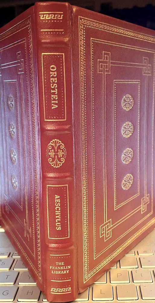 You are buying a leather bound book entitled "Oresteia" by Aeschylus. Classic book that is part of the 100 Greatest Books of All Time....