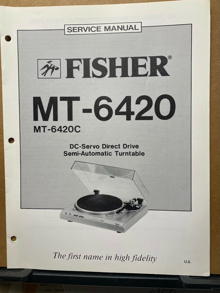 Up for sale is a factory issued Service Manual for Fisher MT Model Turntables. Please select the model of your choice from the drop down menu. These manuals are complete . All are very good condition with minor blemishes. T h ese manuals include at a minimum: Specifications, Schematic Diagrams, Circuit Board, Adjustments, Exploded View and Parts Lists. This is an original copyrighted document. I charge a shipping fee so that I can combine shipping for those that want to take advantage of purchasing more than one item. I pack for safe shipment.
