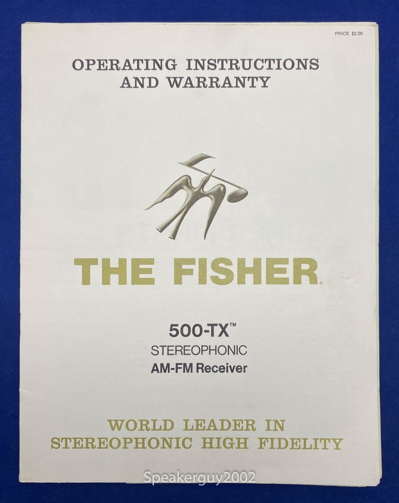 Fisher Manual This listing is for original Fisher Manual. It is not a PDF or Copy. Make: Fisher Model: 500-TX Type: Operation Manual Thanks for looking!!!