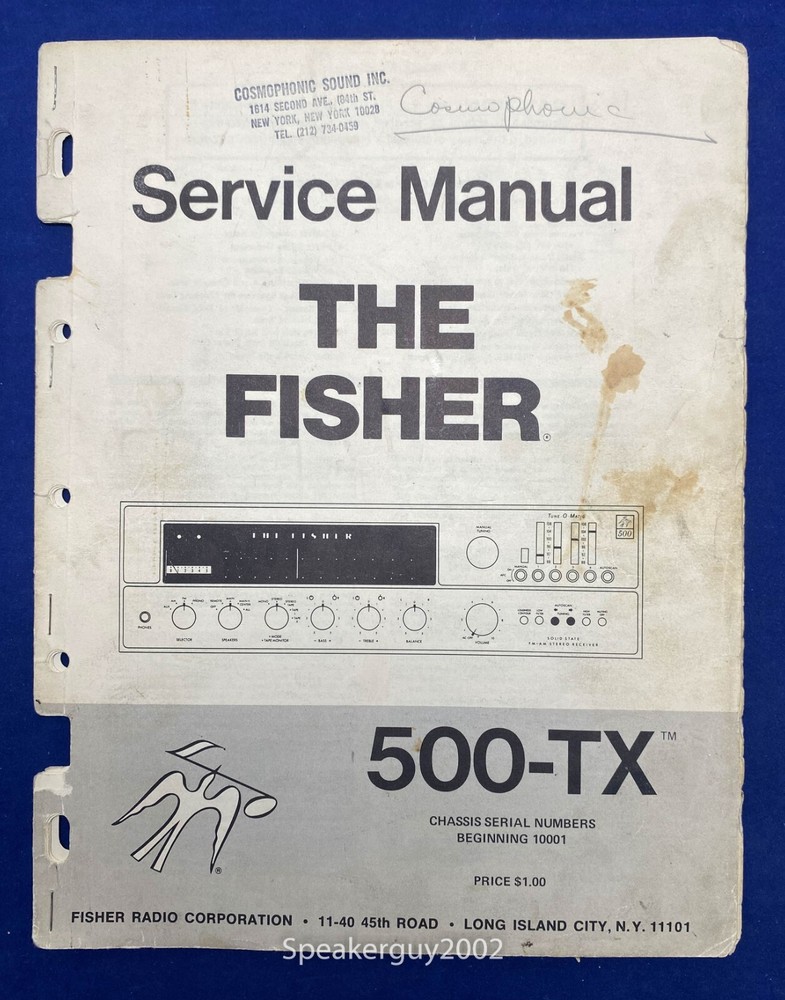Fisher Manual This listing is for original Fisher Manual. It is not a PDF or Copy. Make: Fisher Model: 500-TX Serial #s: Beginning 10001 Type: Service Manual Thanks for looking!!!