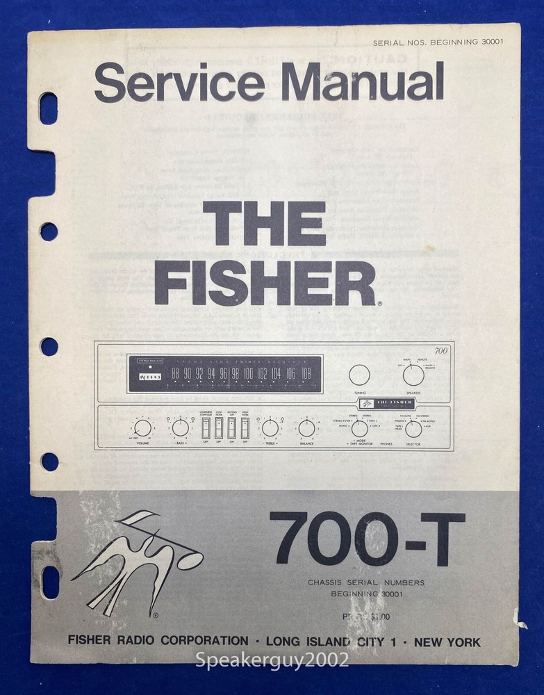 Fisher Manual This listing is for original Fisher Manual. It is not a PDF or Copy. Make: Fisher Model: 700-T Serial #s: Beginning 30001 Type: Service Manual Thanks for looking!!!