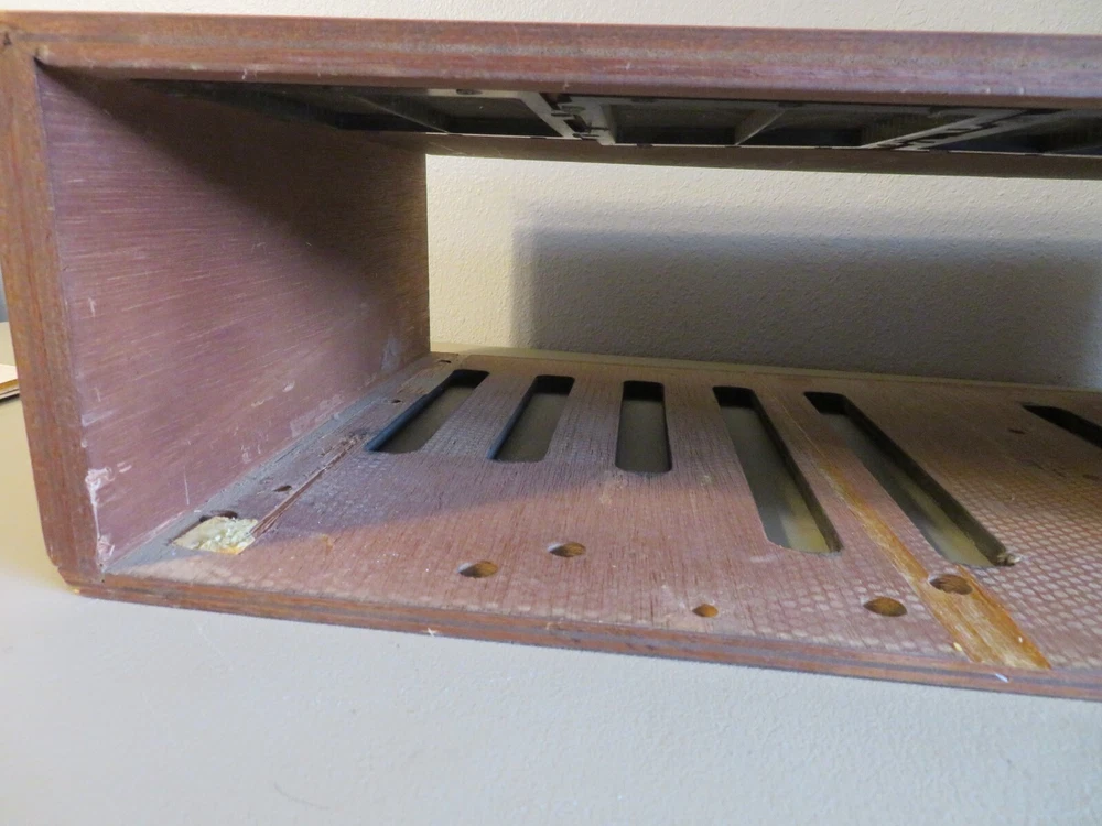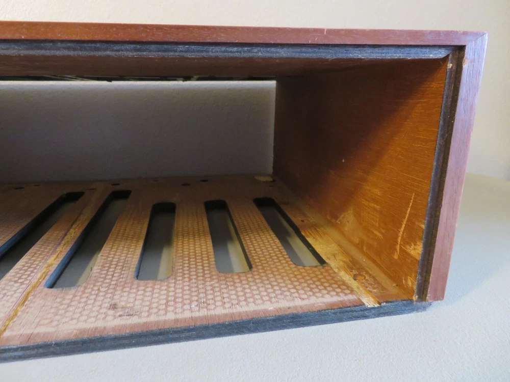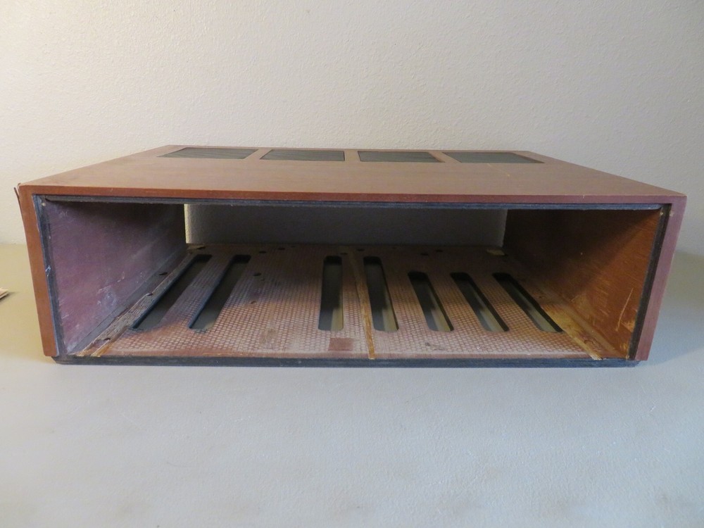 For sale is a vintage original Fisher 404 receiver wood cabinet in good cosmetic condition. This cabinet has some scuffs scratches and on the left side the vernier has been chipped off and is lifting in a couple spots, please see all photos. Comes with the owners manual and spec guide. The cabinet measures 21 1/2 inches wide, 14 3/4 inches deep and is 6 3/8 inches tall. The cabinet opening is 20 inches wide and 5 1/2 inches tall. Pictures are of actual item you will receive. See pictures for a better idea of condition and contents included. Feel free to ask any questions. Return policy is 30 days if any item is not described accurately by the written description or photographs. We deal mostly with vintage and used items. Quality items and fast shipping is our mantra. Check out the other item we have for sale on auction and buy it now.