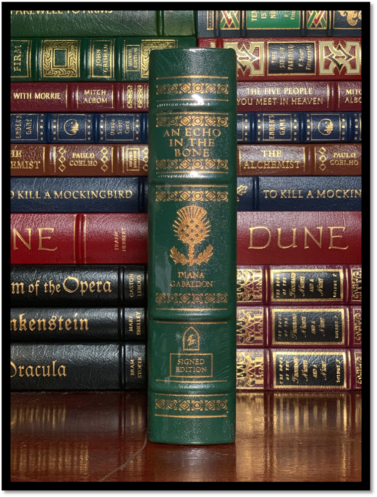 An Echo In The Bone This is new, still sealed Easton Press leather-bound hardback edition of An Echo In The Bone signed by Diana Gabaldon. Jamie Fraser, former Jacobite and reluctant rebel, is already certain of three things about the American rebellion: The Americans will win, fighting on the side of victory is no guarantee of survival, and he’d rather die than have to face his illegitimate son—a young lieutenant in the British army—across the barrel of a gun. Claire Randall knows that the Americans will win, too, but not what the ultimate price may be. That price won’t include Jamie’s life or his happiness, though—not if she has anything to say about it. Meanwhile, in the relative safety of the twentieth century, Jamie and Claire’s daughter, Brianna, and her husband, Roger MacKenzie, have resettled in a historic Scottish home where, across a chasm of two centuries, the unfolding drama of Brianna’s parents’ story comes to life through Claire’s letters. The fragile pages reveal Claire’s love for battle-scarred Jamie Fraser and their flight from North Carolina to the high seas, where they encounter privateers and ocean battles—as Brianna and Roger search for clues not only to Claire’s fate but to their own. Because the future of the MacKenzie family in the Highlands is mysteriously, irrevocably, and intimately entwined with life and death in war-torn colonial America. I ship via media mail or ground advantage within the U.S. If you would like an expedited option please let me know before buying. I ship globally, but I use the U.S. service which I ship to in Kentucky and it ships out to the Country and uses their services. Also, if you are an international buyer and would like to combine shipping and the add to cart and request total option is not working please contact me about creating you a listing. Paypal and Ebay checkout preferred, each allow you to use credit cards and some even offer payment plans. Thanks!