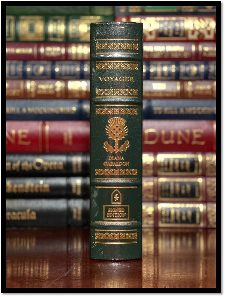 Voyager Signed Edition This is a brand new Easton Press leather-bound hardback of Voyager (Outlander Book 3) Signed by Diana Gabaldon. From the author of the breathtaking bestsellers Outlander and Dragonfly in Amber , the extraordinary saga continues. Their passionate encounter happened long ago by whatever measurement Claire Randall took. Two decades before, she had traveled back in time and into the arms of a gallant eighteenth-century Scot named Jamie Fraser. Then she returned to her own century to bear his child, believing him dead in the tragic battle of Culloden. Yet his memory has never lessened its hold on her... and her body still cries out for him in her dreams. Then Claire discovers that Jamie survived. Torn between returning to him and staying with their daughter in her own era, Claire must choose her destiny. And as time and space come full circle, she must find the courage to face the passion and pain awaiting her...the deadly intrigues raging in a divided Scotland... and the daring voyage into the dark unknown that can reunite—or forever doom—her timeless love. SHIPPING I ship via media mail within the U.S. If you would like an expedited option please let me know before buying. I ship globally, but I use the U.S. service which I ship to in Kentucky and it ships out to the Country and uses their services. Also, if you are an international buyer and would like to combine shipping and the add to cart and request total option is not working please contact me about creating you a listing