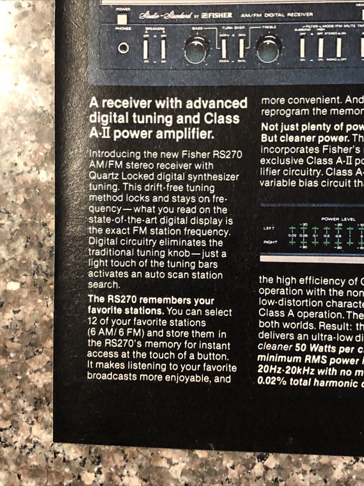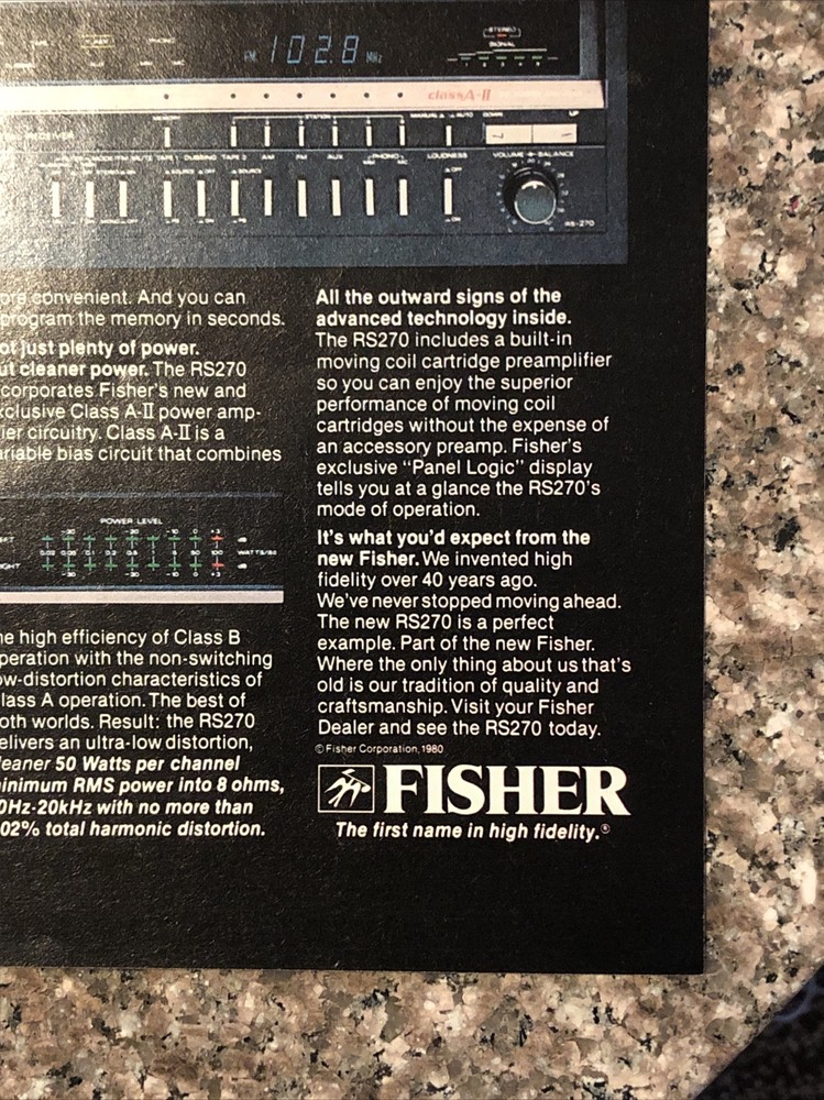 PRINT AD 1980 Fisher RS270 Stereo Receiver New Fisher 1st Name In High Fidelity. Original full page vintage magazine print ad.