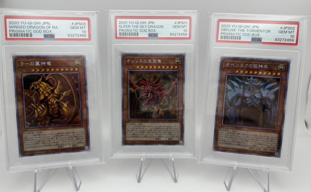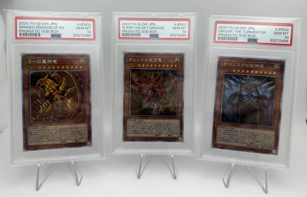 PSA 10 - 2020 YU-GI-OH! JPN, PRISMATIC GOD BOX JPS01, SLIFER THE SKY DRAGON JPS02, OBELISK THE TORMENTOR JPS03, WINGED DRAGON OF RA Selling as a trio together