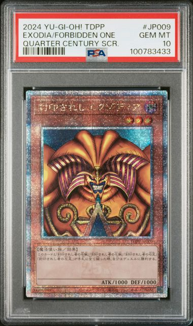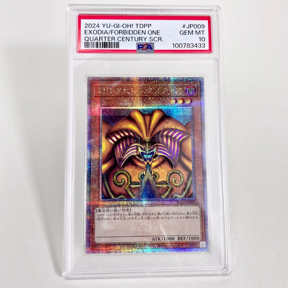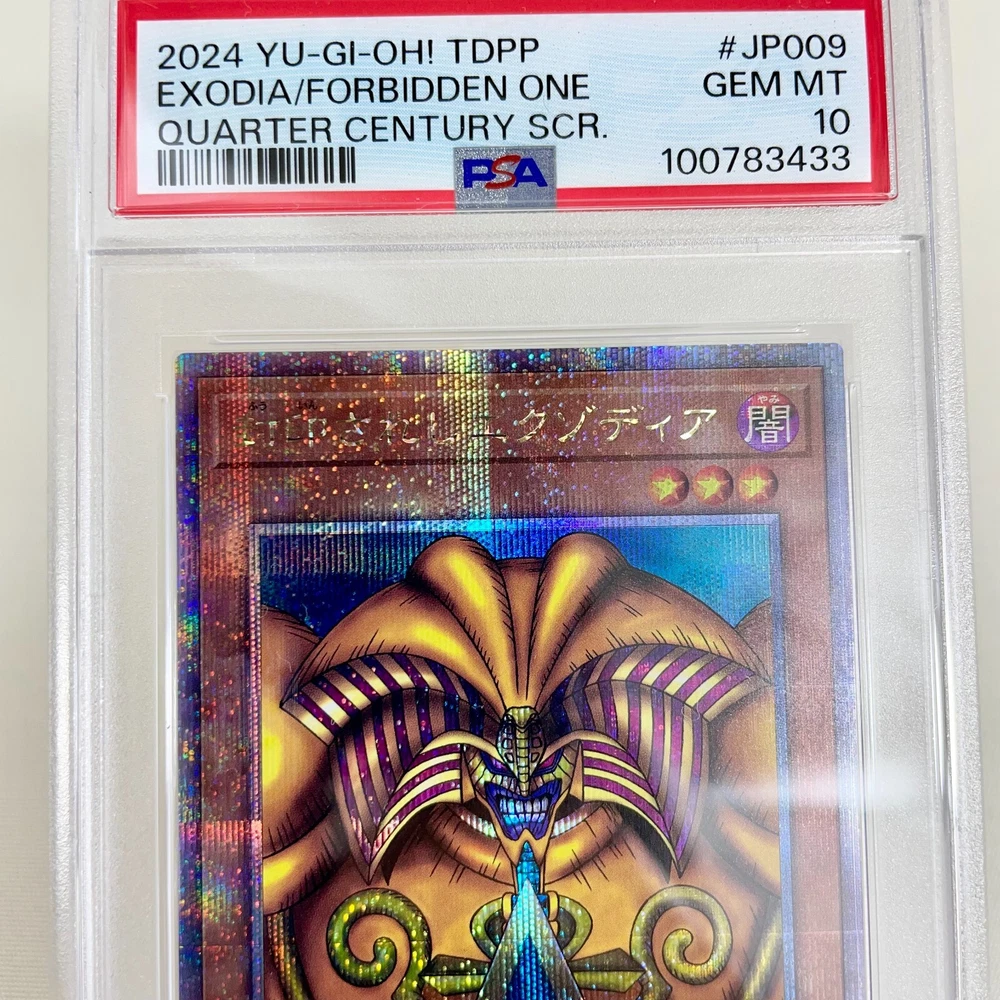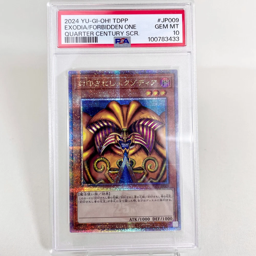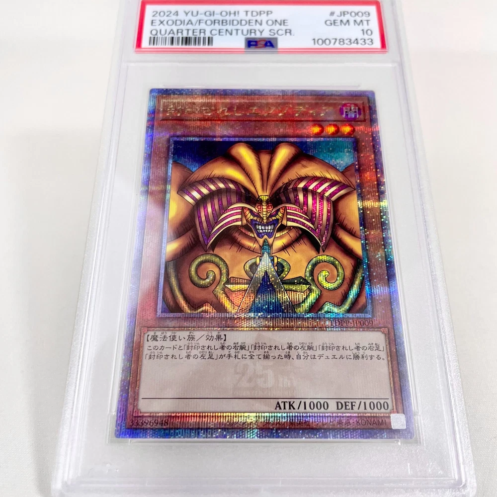 Description PSA 10 Gem Mint Exodia the Forbidden One TDPP-JP009 QC Secret Rare Japanese Add a legendary card to your Yu-Gi-Oh! collection with this PSA 10 GEM MINT graded Exodia the Forbidden One from the TDPP-JP009 set! Featuring the stunning Quarter Century Secret Rare (QC SCR) foil , this highly sought-after card is a must-have for collectors and duelists. ✨ Product Details: ✔ Card Name: Exodia the Forbidden One ✔ Set: TDPP-JP009 (Yu-Gi-Oh! OCG) ✔ Rarity: Quarter Century Secret Rare (QC SCR) ✔ Condition: PSA 10 GEM MINT (Graded & Certified) ✔ Language: Japanese ✔ Highly Collectible & Investment-Worthy 🔥 Why Buy From Us? ✅ 100% Authentic Yu-Gi-Oh! OCG Card ✅ Professionally Graded by PSA (GEM MINT 10) ✅ Secure Packaging & Fast Shipping ✅ Trusted eBay Seller with Excellent Ratings A must-have for Yu-Gi-Oh! collectors, Exodia fans, and competitive duelists ! Don’t miss out on this PSA 10 Quarter Century Secret Rare Exodia the Forbidden One —order now before it's gone! 🚀 Shipping We mainly use eBay SpeedPAK , DHL Express , FedEx , or Japan Post for shipping. Notice to International Buyers For U.S. Buyers Import duties are already included in the item price and shipping cost. You will not need to pay any additional customs duties. Please purchase with confidence. For Buyers Outside the U.S. Import duties and taxes are not included in the item price or shipping cost. However, please note that the item price already reflects the U.S. import duties. If you would like to discuss the price, feel free to send us an Offer or Message. Remote Area Delivery If the delivery address is located in a remote area, FedEx or DHL may apply an additional surcharge.