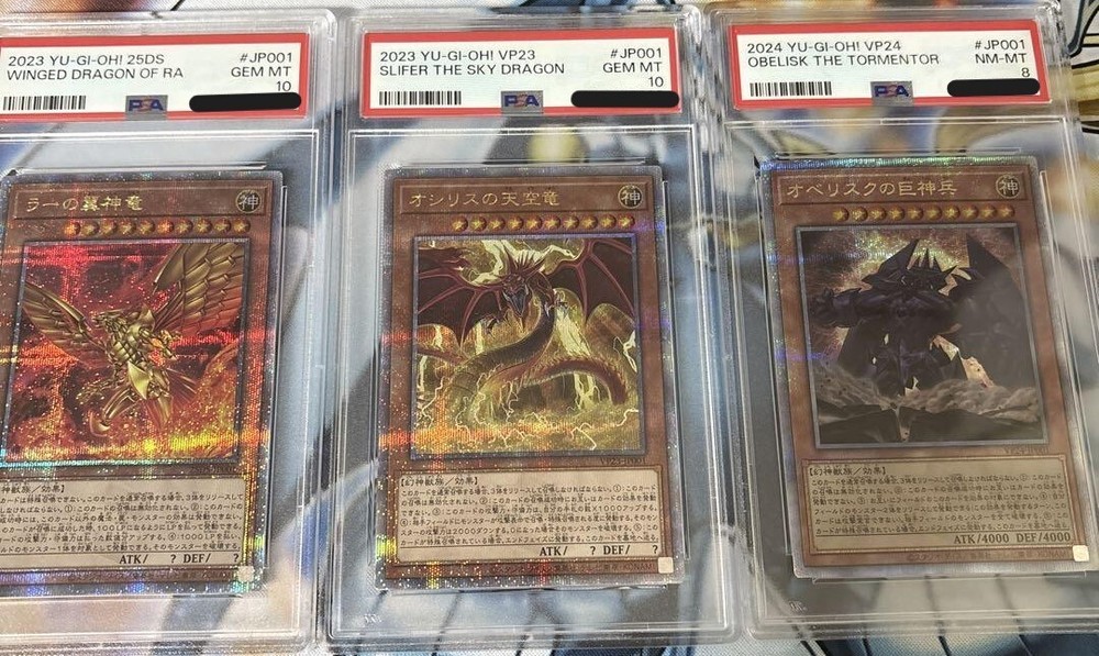 PSA 8 & 10 Yu-gi-oh quarter century secret Rare Obelisk Slifer Ra Serial number Item Description The Item is NEW and Serial number!!! PAS10(Slifer,Ra ), PSA 8(Obelisk ) Individual numbers are available, so please check the photos and the web to confirm the condition. Shipping Standard Shipping (Fedex or DHL or Japan Post) Handling Time: 10 business days Business days are not include Saturday, Sunday and National holidays. We will arrange shipping for you asap except the holidays, after your payment cleared. The package will arrive 5-14 days after shipment. International Buyers - Please Note: Import duties, taxes, and charges are not included in the item price or shipping cost. These charges are the buyer's responsibility. Please check with your country's customs office to determine what these additional costs will be prior to bidding or buying. It is also sold on other sites. If it sells first, it may run out of stock. Please understand.Thank you for your understanding.