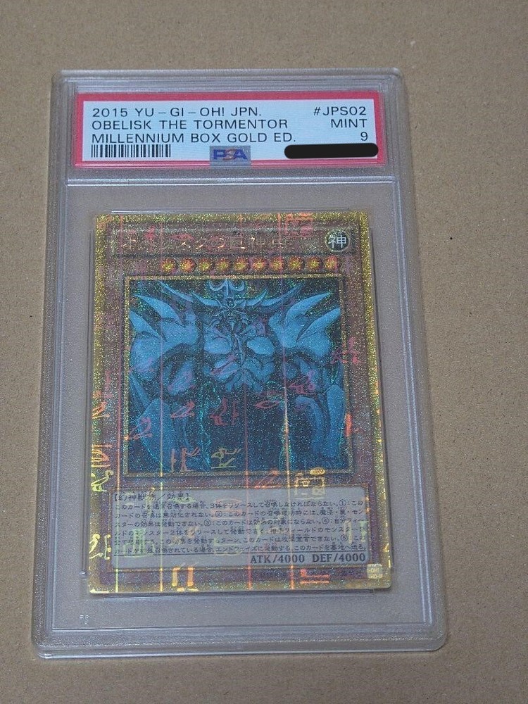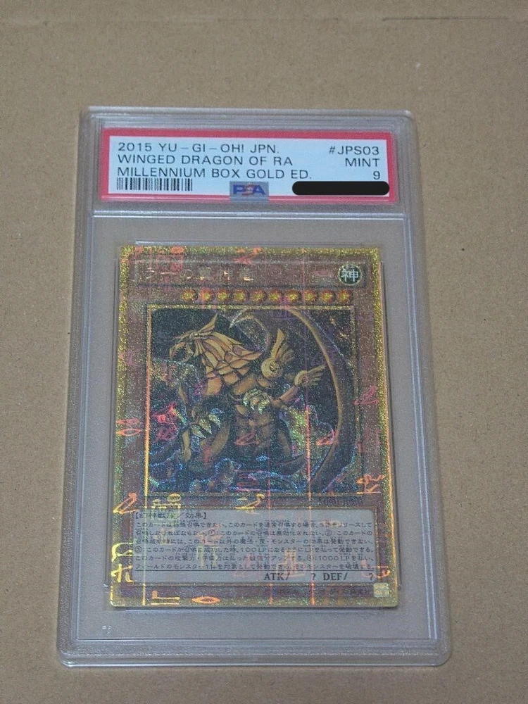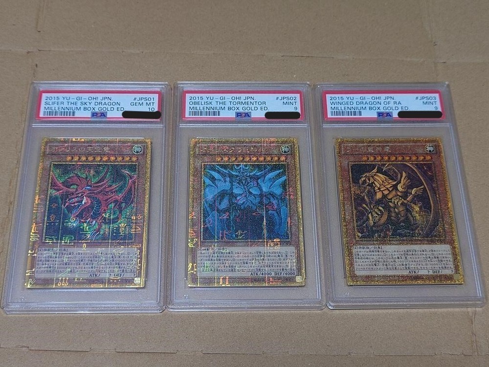 PSA 9 & 10 Yu-gi-oh MILLENNIUM GOLD EDITION Obelisk Slifer Ra GOD serial number Item Description The Item is PSA10 (Slifer) , PSA 9 (Obelisk,Ra)! serial number! The obelisk has some white chips on the upper left side of the obelisk's backside, but otherwise it is in good condition with no noticeable scratches. (Photo 8) Other 「yu-gi-oh card collection」 are available, please visit our store! Shipping Standard Shipping (Fedex or DHL or Japan Post) Handling Time: 10 business days Business days are not include Saturday, Sunday and National holidays. We will arrange shipping for you asap except the holidays, after your payment cleared. The package will arrive 5-14 days after shipment. International Buyers - Please Note: Import duties, taxes, and charges are not included in the item price or shipping cost. These charges are the buyer's responsibility. Please check with your country's customs office to determine what these additional costs will be prior to bidding or buying. It is also sold on other sites. If it sells first, it may run out of stock. Please understand.Thank you for your understanding.