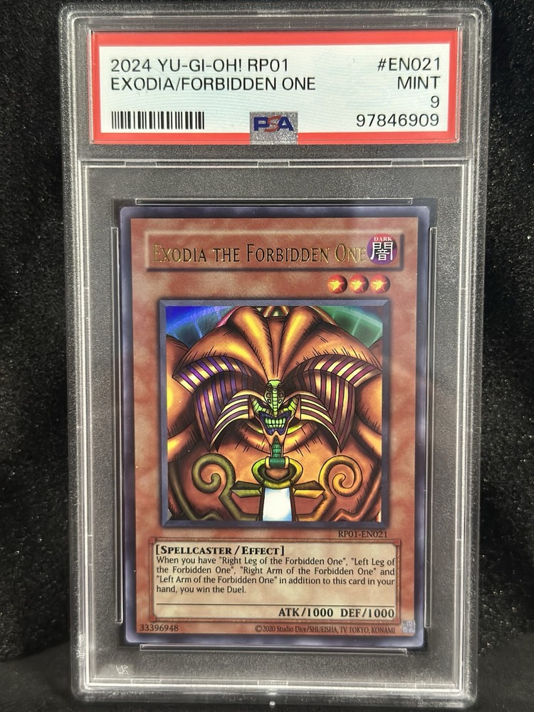 Elevate your Yu-Gi-Oh! TCG collection with the iconic Exodia the Forbidden One, card number RP01-EN021. A must-have for duelists and collectors alike, this card features the enigmatic Exodia, a powerful addition to any deck or display. With a grade of 9 by Professional Grader, this card is a testament to its quality and preservation. It's a perfect candidate for those looking to enhance their game or collection with a touch of Yu-Gi-Oh! history. Certification Number 97846909 assures its authenticity and grade accuracy.