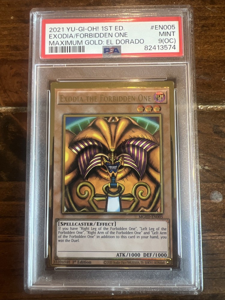 The PSA 9 GEM Mint MGED-EN005 EXODIA THE FORBIDDEN ONE Premium Gold EL DORADO card is a highly sought-after collectible card from the Yu-Gi-Oh! TCG. Featuring the character Yugi Muto and belonging to the Premium Gold set, this card is a rare find for collectors and players alike. With a high Attack/Power and Defense/Toughness of 1000, this metal card with a holo finish is a valuable addition to any card collection, especially for fans of spellcaster monsters and unique 1st Edition releases.