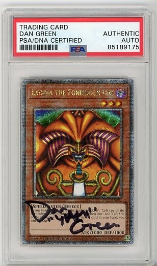 Dive into the world of Yu-Gi-Oh! TCG with the iconic Exodia the Forbidden One, a Quarter Century Secret Rare card that's a must-have for collectors and duelists alike. From the 25th Anniversary Tin: Dueling Heroes set, this card bears the prestige of being a limited edition piece, coupled with the distinctiveness of being hard signed by Dan Green himself. The card, numbered TN23-EN002, features the enigmatic spellcaster with an attack and defense of 1000, ready to tip the scales in your favor. Authenticated by the Professional Sports Authenticator (PSA) and showcased in English, this Exodia card is a significant addition to any collection, encapsulating both the strategic depth and nostalgic value of Yu-Gi-Oh! history.