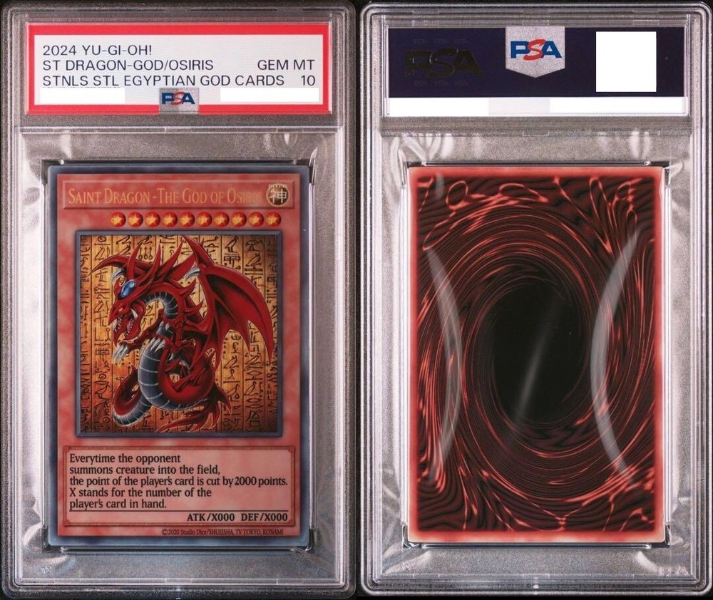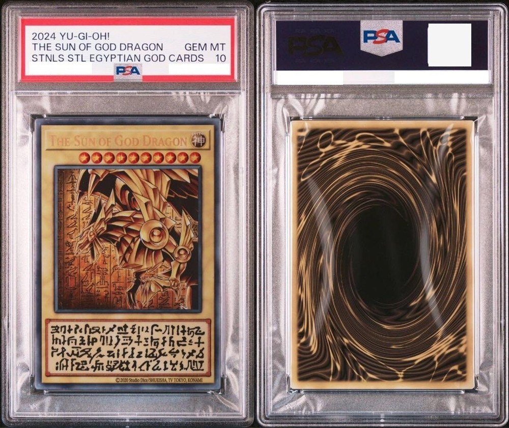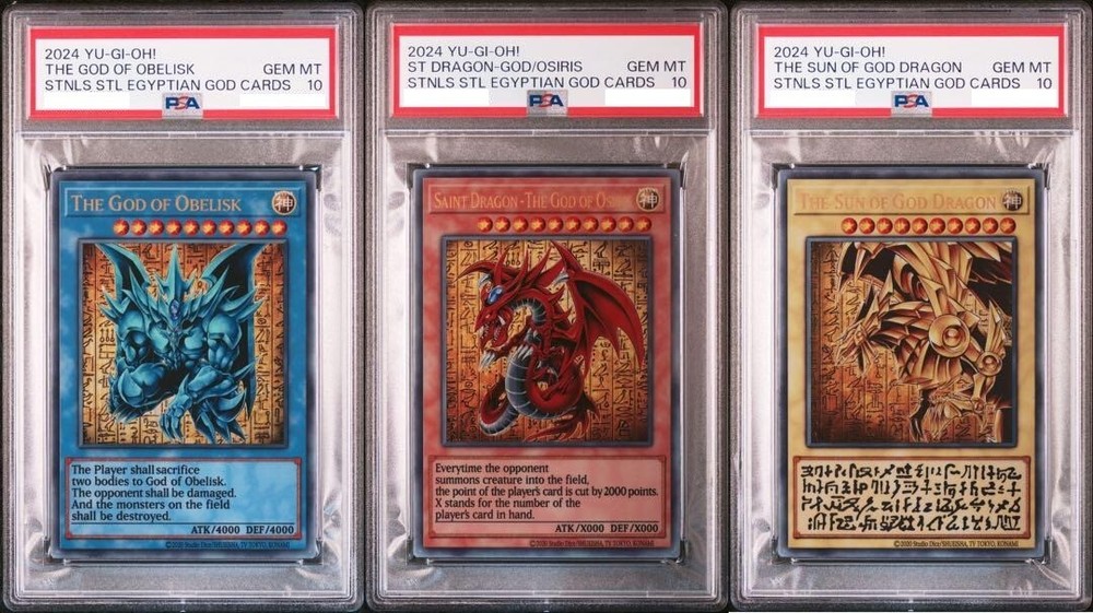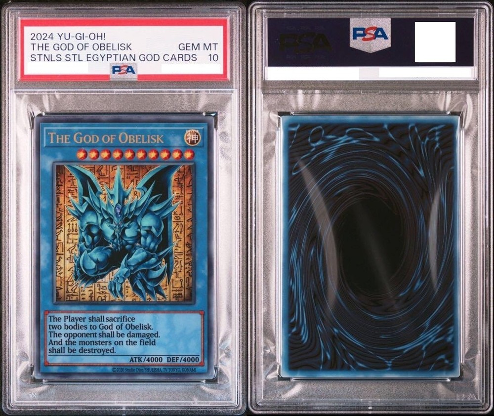 Description This is a complete set of all three Egyptian God Cards from Yu-Gi-Oh! — Slifer the Sky Dragon , Obelisk the Tormentor , and The Winged Dragon of Ra — each made from stainless steel and professionally graded PSA 10 GEM MINT . All three cards come with sequential PSA serial numbers , making this set an extremely rare and valuable collector’s item. Originally released as a Japan-exclusive special edition , these cards were never intended for gameplay use and are prized for their craftsmanship and prestige. 【Product Details】 Card Names : Slifer the Sky Dragon / Obelisk the Tormentor / The Winged Dragon of Ra Material : Stainless Steel Edition : Japan Exclusive – Special Collector’s Set Condition : PSA 10 GEM MINT (All three cards) Certification : Sequential PSA serial numbers Language : Japanese Encased : Each card is sealed in an official PSA slab Note : For display and collection purposes only; not tournament legal 🌟 This is a once-in-a-lifetime opportunity to own the full set of Egyptian God Cards in pristine condition — a true treasure for serious Yu-Gi-Oh! collectors. Rest assured, all of our products are 100% authentic. Items will be packed carefully and shipped from Japan. Feel free to contact us anytime! Shipping We will ship by DHL or FedEx or Orange Connex or Japan Post. International Buyers Please Note: Import duties and taxes are not included in the item price or shipping cost. Please check with your countrys customs office to determine these additional costs prior to bidding or buying. Additionally, if the delivery address is in a remote area, there may be additional charges by FedEx or DHL. If such charges occur, you may be asked to pay an additional. Thank you for your understanding.