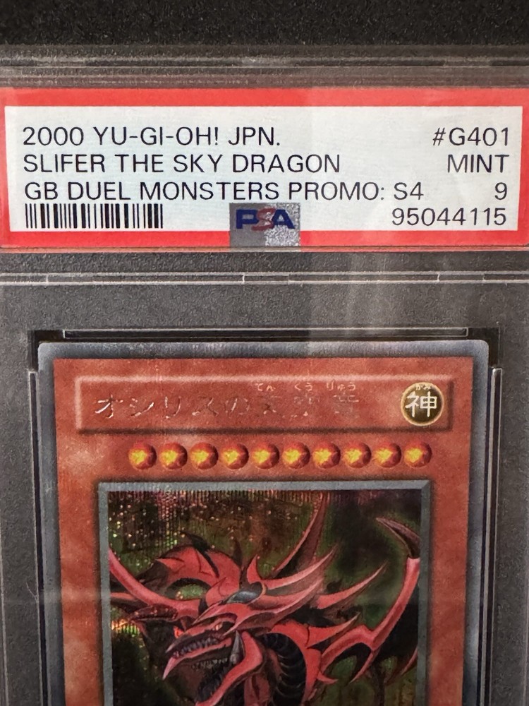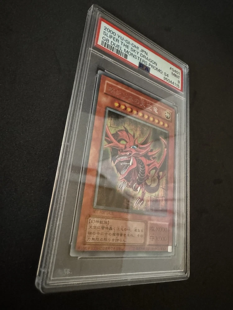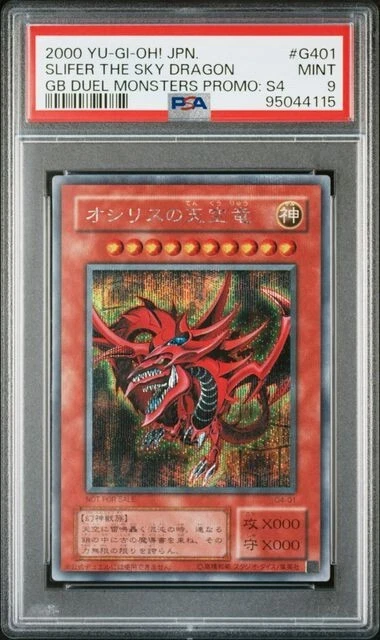 [Product name] PSA 9 Mint Yu-Gi-Oh! YuGiOh Slifer the Sky Dragon G4-01 Secret Rare 2000 Japanese [Description] Item Condition : PSA 9 Certificate of Authenticity This item is Japanese ver. Please refer to the photos for detailed product condition. [Shipping] We ship by Fedex, DHL or Japan post. We always send the item with a tracking number. So please place an order without any concern on delivery. You can always track the delivery status. Shipping is only available to the address registered in eBay. If you want us to send another address, please change your address on eBay and then place an order. Shipping is available from Monday to Friday. Weekends are not available because freight (shipping) companies are closed. We do not mark merchandise values below value or mark items as "gifts" Japan, US and International government regulations prohibit such behavior. [About Importer's Obligation] Import duties, taxes, and charges are not included in the item price or shipping cost. These charges are the buyer's responsibility. Please check with your country's customs office to determine what these additional costs will be prior to bidding or buying. Thank you for your understanding.