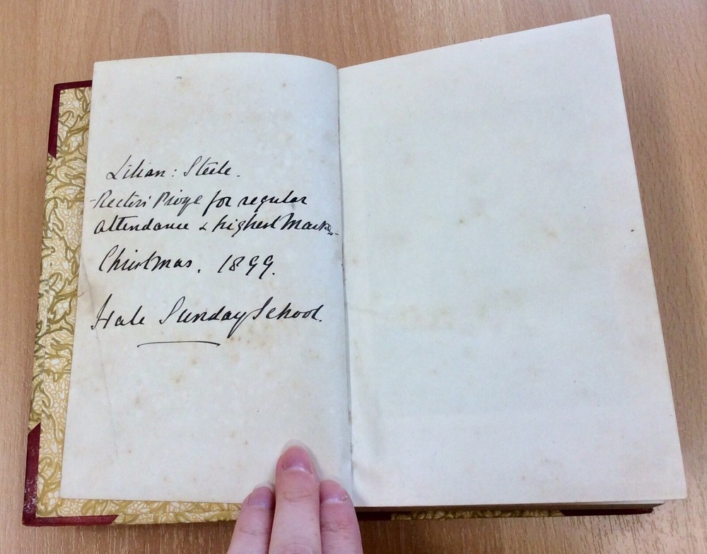 Partially leather-bound edition of Olive, A Novel, with an inscription dating it to 1899. Has heavy foxing to the early pages, but is otherwise clean, complete and intact. Ideal as a reading copy.