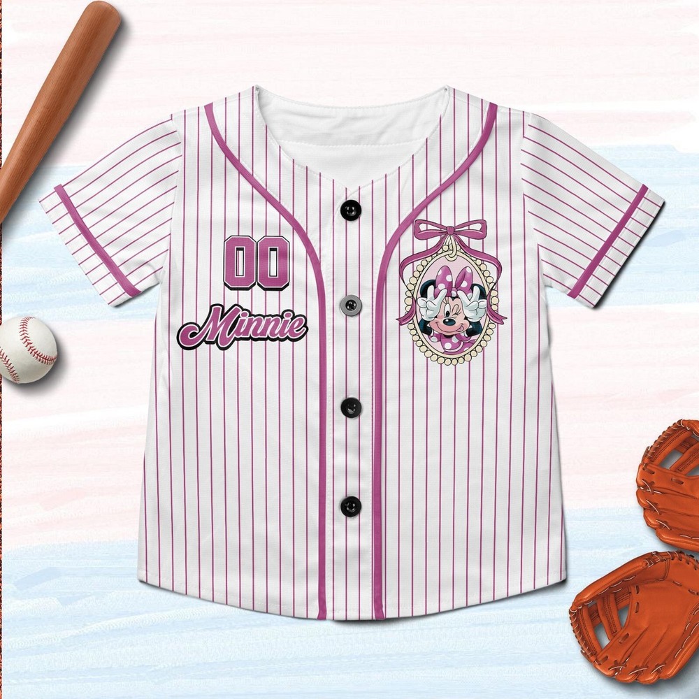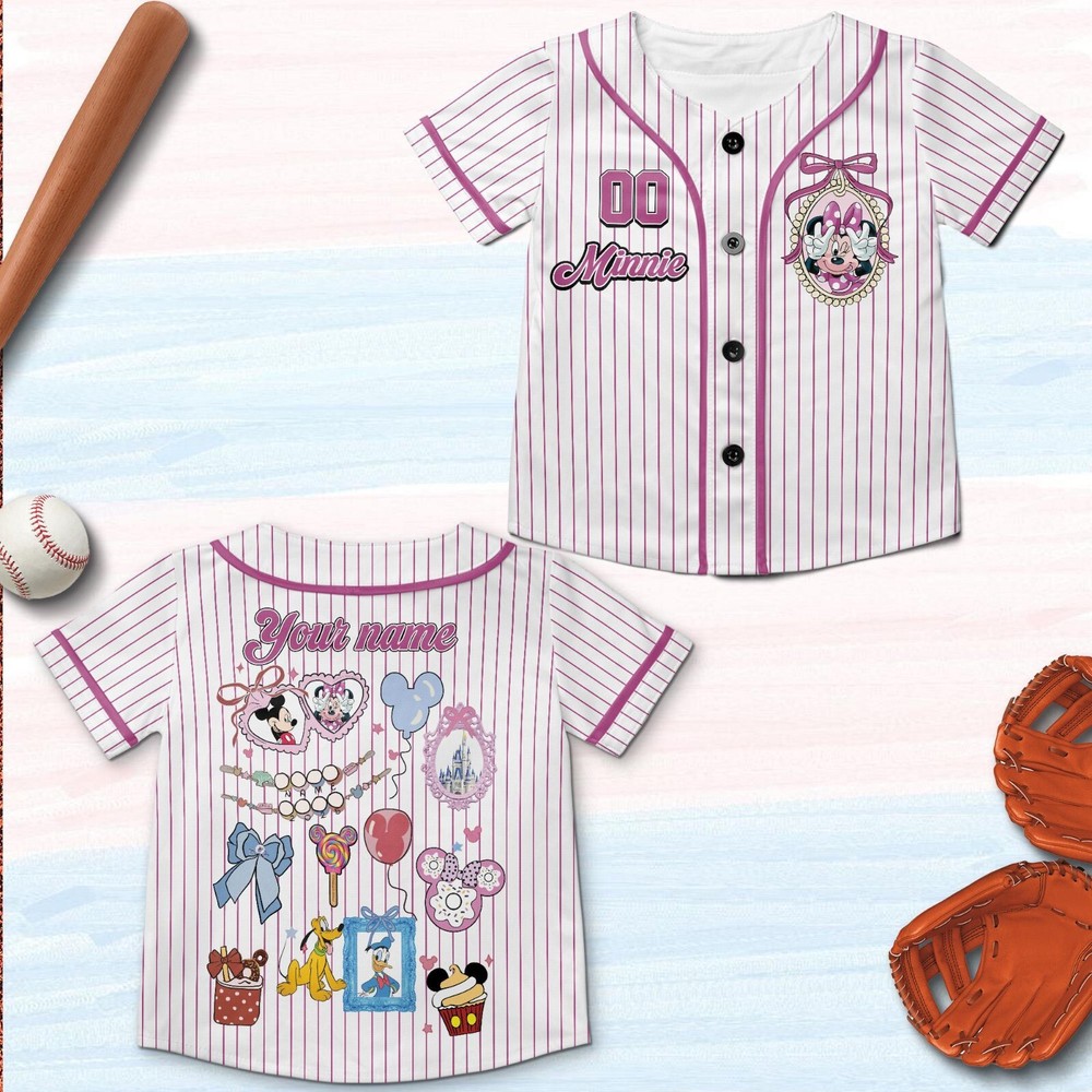 Custom Disney Minnie Mouse Coquette Baseball Jersey for Kids Adults Gift