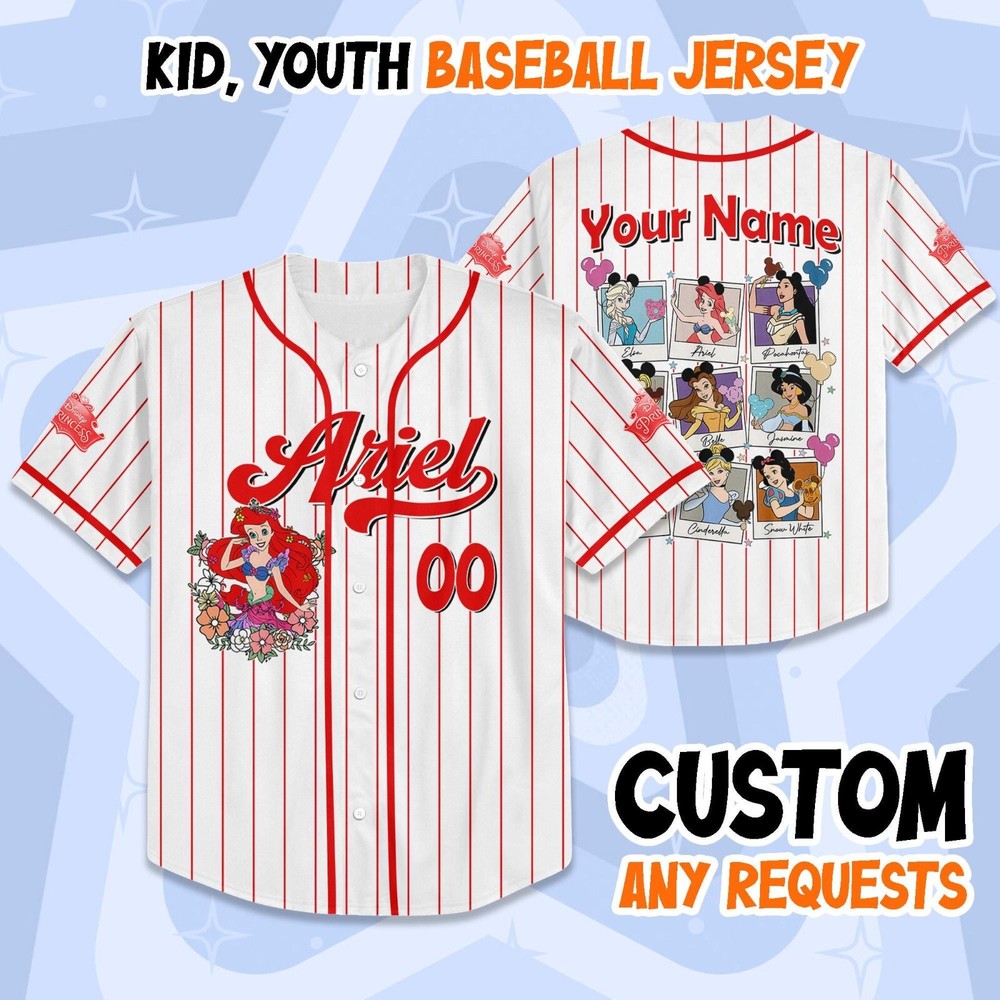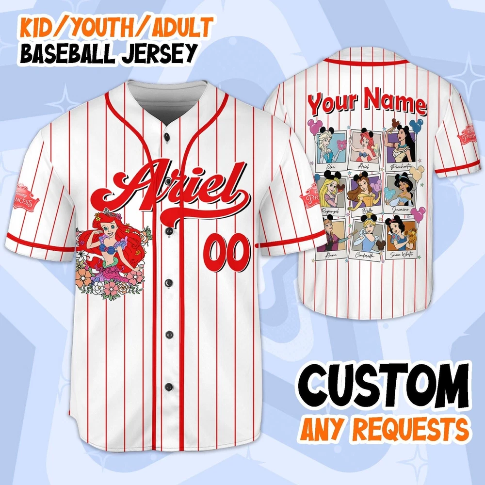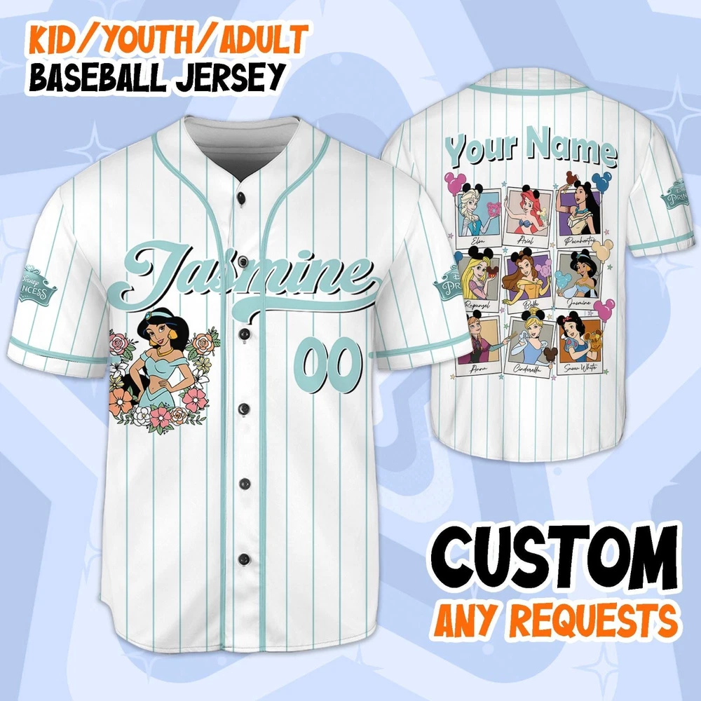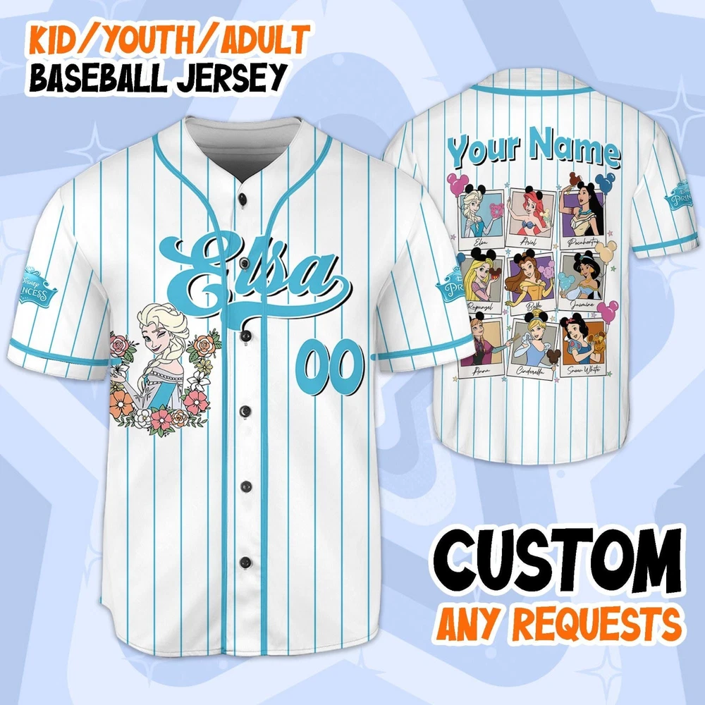 Custom Disney Princess Baseball Jersey for Kids & Adults Perfect Gift