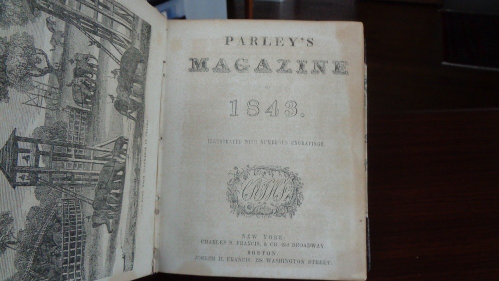 Peter Parley’s Magazine for 1843. Bound in three quarter modern leather (leather spine and corners) with marbled paper. Publisher: C.S. Francis and Co., New York, 1943. Binding is in fine condition. Contents clean and bright. Title-page and fly-leaf with toning. Tooled leather labels on the spine. 392 pages. 6 x 7 inches. Illustrated with numerous in-text engravings. Inventory #25-034. Price: $150.