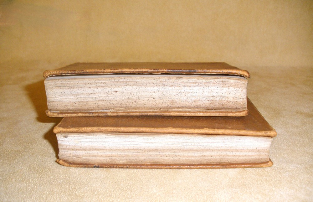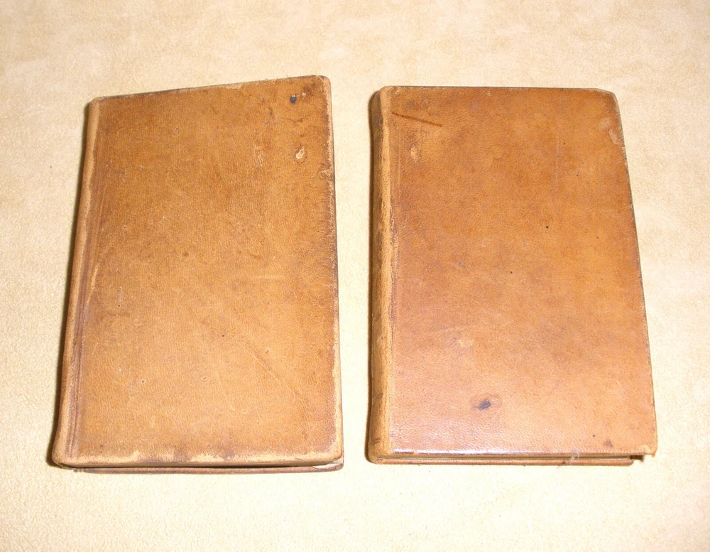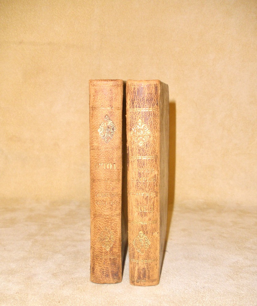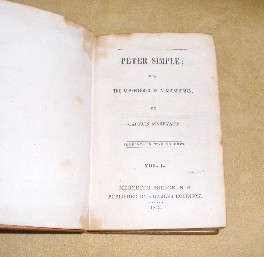 Hello, up for purchase is a very nice set of small leather bound books dating from 1843. It's a two volume set and is entitled Peter Simple or The Adventures of a Midshipmanm and was written by Captain Marryatt. The books measure 4 3/4 inches tall and 3 1/8 inches wide. Regarding condition, I'm not skilled in judging condition on books that are 179 years old. The bindings are fully intact with no missing pages. The pages have darkened around the perimeter, have some creases on the top corners, and are crinkled from heat and cold over the years. The books will be shipped wrapped in bubble wrap and in a box. Any other questions? Please ask. Thanks Thanks for looking! Please check out the other items in my store. I am very flattered when someone wishes to purchase more than one item from my store. I will gladly combine shipping expenses. Please click on the "buy it now" button for each item desired, then request me to send you the total owed once you're finished. I will package the items and send an invoice based on the weight.