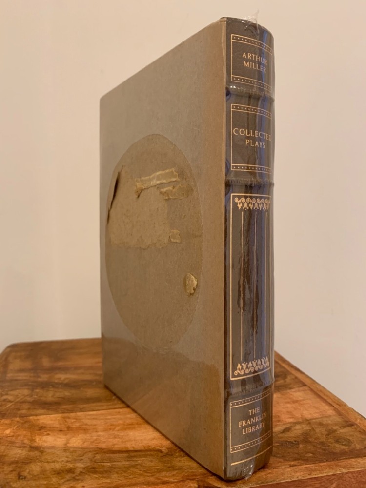 This is full genuine leather bound in new and sealed condition, never opened or read. The publisher’s notes booklet is inside the plastic wrap. The last photo is for exemplification only. There is also minuscule oxidation on the gold gilt of the page block as shown in photos. This book is the perfect find, perhaps the last one to be found in plastic wrap. It laid in waiting for nearly 40 years to find its unique loving owner. 'Collected Plays' by Arthur Miller is one of Franklin Library's ‘100 Greatest Masterpieces of American Literature’, with wonderful attributes: •Fully and tightly bound in genuine leather. •22kt gold accents deeply inlaid on the "hubbed" spine and covers. •Heavy duty binding boards enhance the book’s durability. •Superbly printed on acid-neutral paper that lasts for generations. •Sewn pages – not just glued like ordinary books. •Handsome moiré end pages and a satin-ribbon page marker. •Gold gilded page ends. •Rigorous inspection at every stage ensured adherence to exacting standards and the highest quality. •Superb craftsmanship and commitment to quality. The appeal for collecting Franklin Library comes from having these attributes taken way further into the exquisite quality, durability and craftmanship, than Easton Press and Folio Society managed with their productions. This book is the perfect companion out on a park bench with a hot cup of coffee or snuggled up in front of the fireplace. Despite its all-inclusive nature it still feels very light and compact at a size of 4.5 x 16 x 24cm. Wonderful to hold and excellent reading experience.