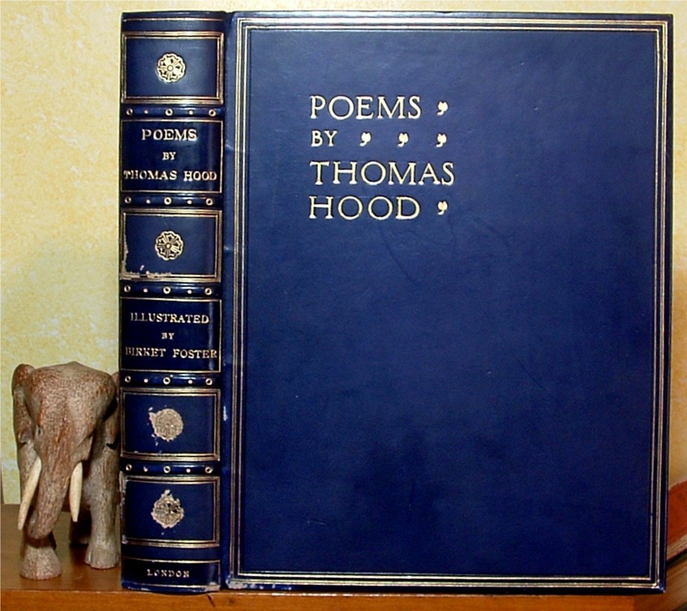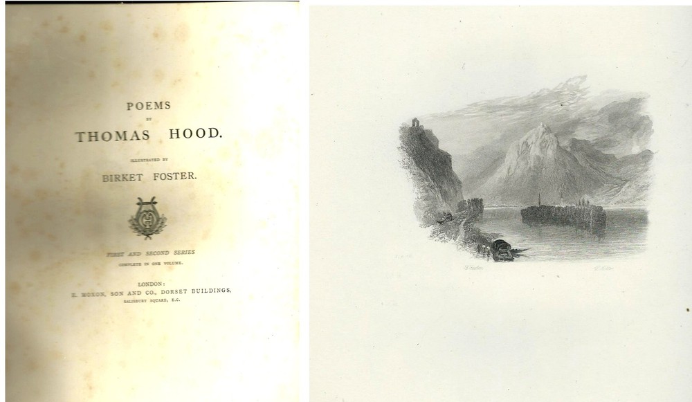 Poems by Thomas Hood 1 st and 2 nd Series Complete in 1 Volume You are bidding on Poems by Thomas Hood 1 st and 2 nd Series Complete in 1 Volume , with steel engravings by Birket Foster. E. Moxon, Son and Co. , London published the book sometime between 1869 to 1877; when Ward, Lock & Tyler stopped using the imprint. There is no publishing date nor indication of subsequent printings. The interior is in good condition. The pages are tight. There is foxing on the frontispiece and title page, and light foxing on few other pages. The frontispiece is missing it tissue guard. If any of the other steel engravings had tissue guards, they are also missing. There are no tears or marks. There are no signs of prior ownership . The beautiful custom leather cover is in good++ condition. There is scuffing of the spine and front board. The bookbinder did not sign his work. The custom clamshell box is in good condition. There is considerable wear at the head and foot of the back and light wear at the other corner points. The book is 8 7/8” x 10 3/4” tall. Birket Foster created beautiful steel engravings for each of the 44 poems, plus the frontispiece and decorative elements. *** Always communicate through the eBay message system .*** Please if you need any additional information and photos, eBay message me immediately. Save money when you buy more than one item (lot) from us! Except in rare cases, s & h to a U. S. address via media mail in the same box is $1.00 for each additional book. International buyers , it is important that you eBay message me for S & H cost and combine shipping savings. The postal service cutbacks and rate increases have changed everything. PLEASE CHECK OUT MY E B A Y STORE AND OTHER AUCTIONS!!!