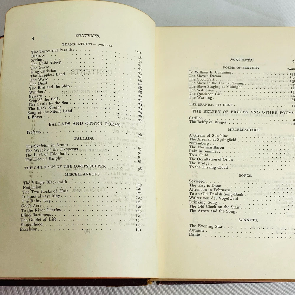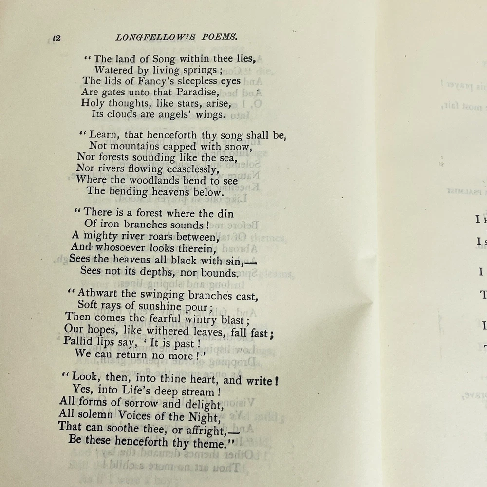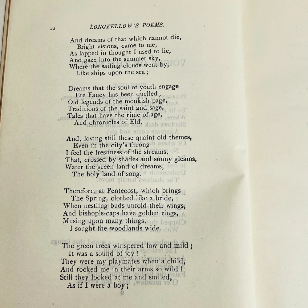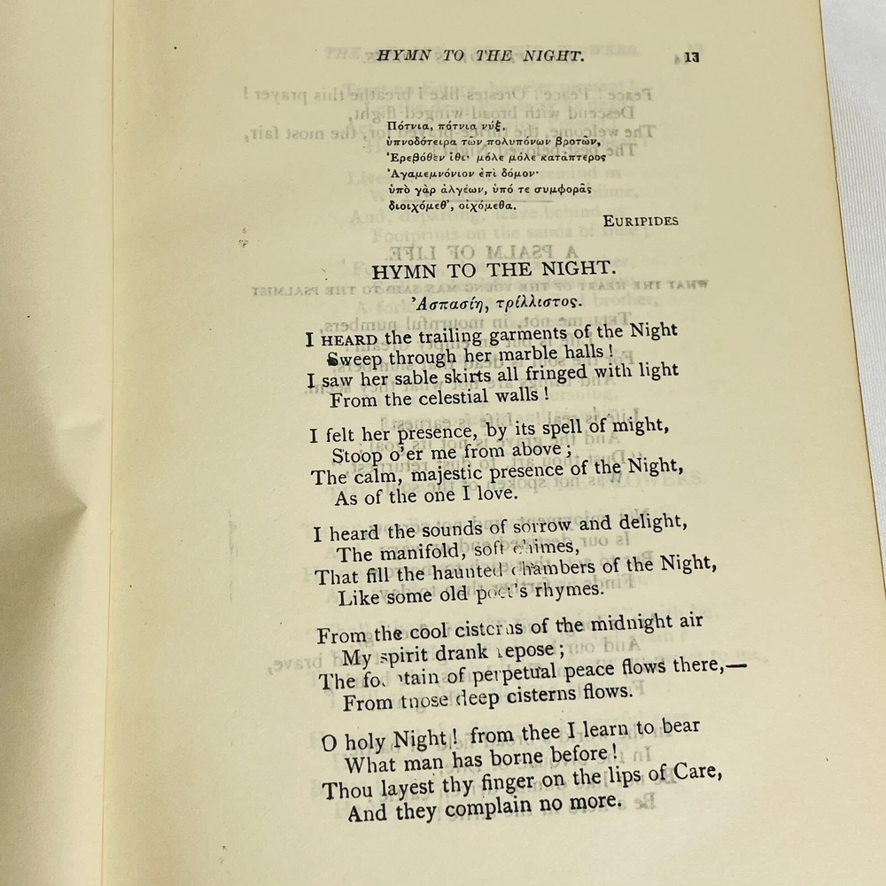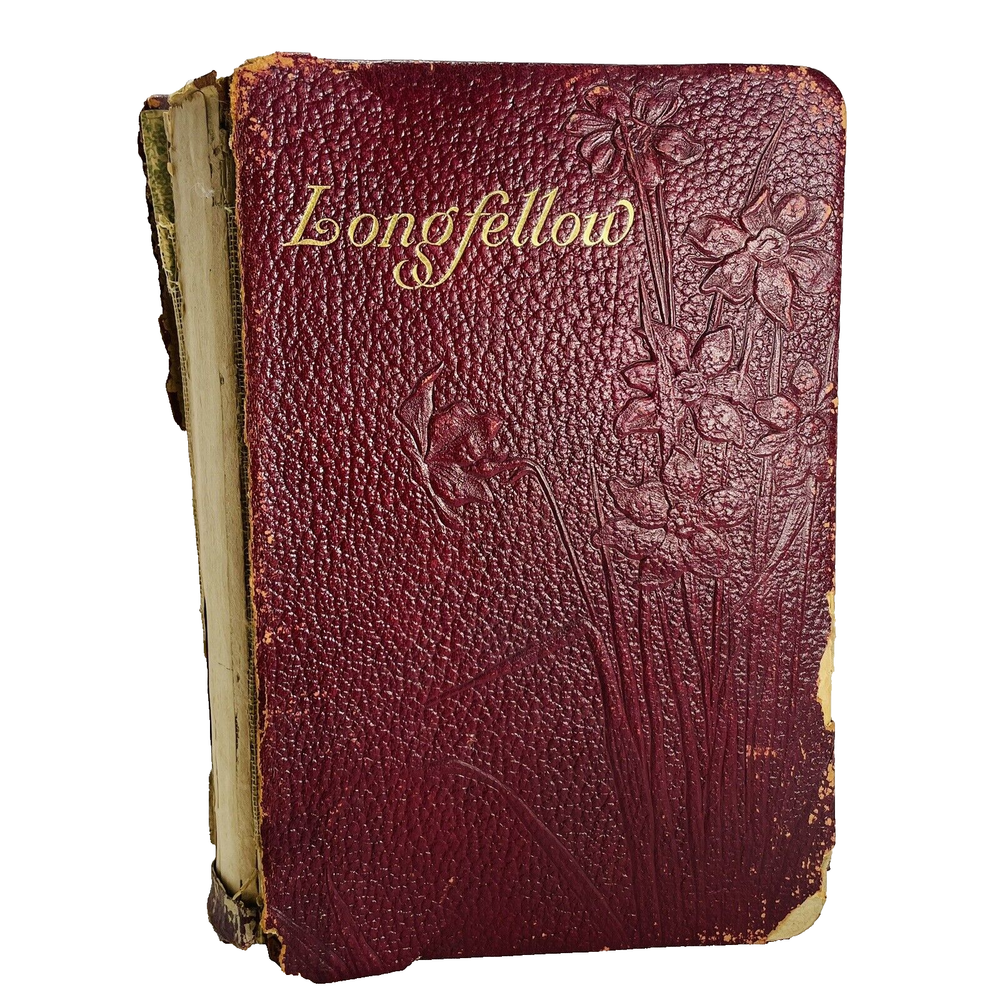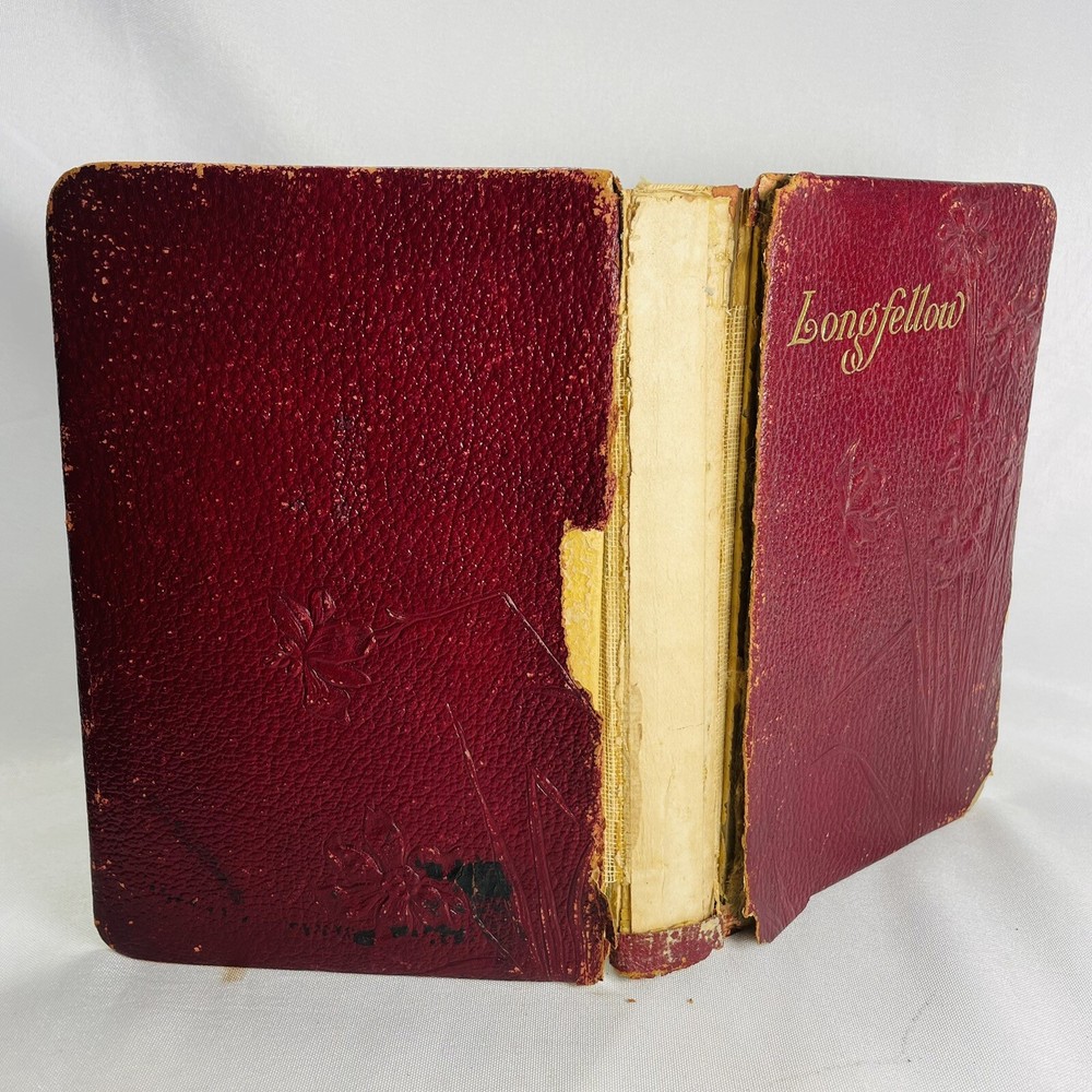 Poetical Works of Henry Wadsworth Longfellow Book Damaged, Undated Antique Book is inscribed with a date of 03. There is no published date in the book Book has heavy damage, such as missing spine, covers coming off. Please see pictures for all details. Pages are legible.