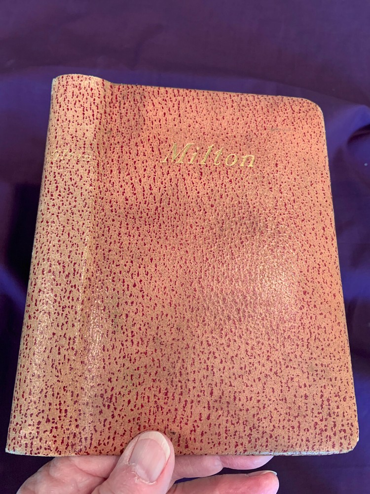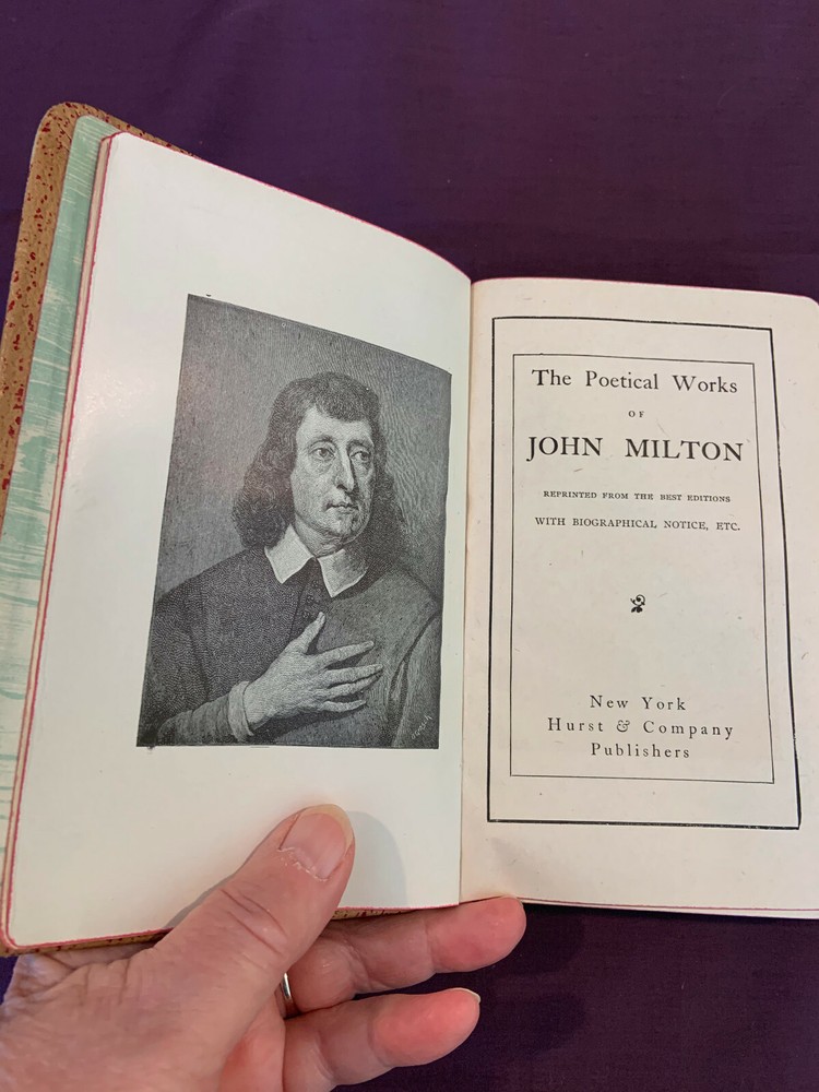 The Poetical Works of John Milton Reprinted From The Best Editions With Biographical Notice, ETÇ.. New York [:] Hurst & Company' c.1900 . 4 3/4 " X 7 1/4", 561pp, Padded grained reddish tan leather with gilt lettering on cover and spine, green wash endpapers, all edges gilt. Printed title page, portrait frontis, text clean, toned, binding solid. This is from a smoke free home. Please email me with any questions before bidding. All sales are final. Please check out my other auctions. I will be glad to combine your purchases to save you postage! Please let me know if you are bidding on more items. I ship the next day except for weekends and holidays. Payment musts be received within 5 days of auction closing. Returns accepted if there is a problem. Please contact me before returning an item. Buyer pays return postage. Refund given when item has been returned to the seller. Happy Buying!!! Thanks for looking!!! International bidders please wait for an invoice. Packages will be weighed and USPS rates will apply with s small handling charge for packaging, usually under a dollar. If you want tracking, you must use priority rates. I will use first class rates when weight allows. * Import duties, taxes and charges are not included in the item price or shipping charges. These charges are the buyer’s responsibility. * Please check with your country’s customs office to determine what these additional costs will be prior to bidding/buying.” * “These charges are normally collected by the delivering freight (shipping) company or when you pick the item up – do not confuse them for additional shipping charges.” * I do not mark merchandise values below value or mark items as ‘gifts’ - US and International government regulations prohibit such behavior.”