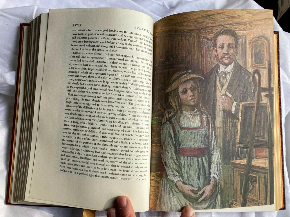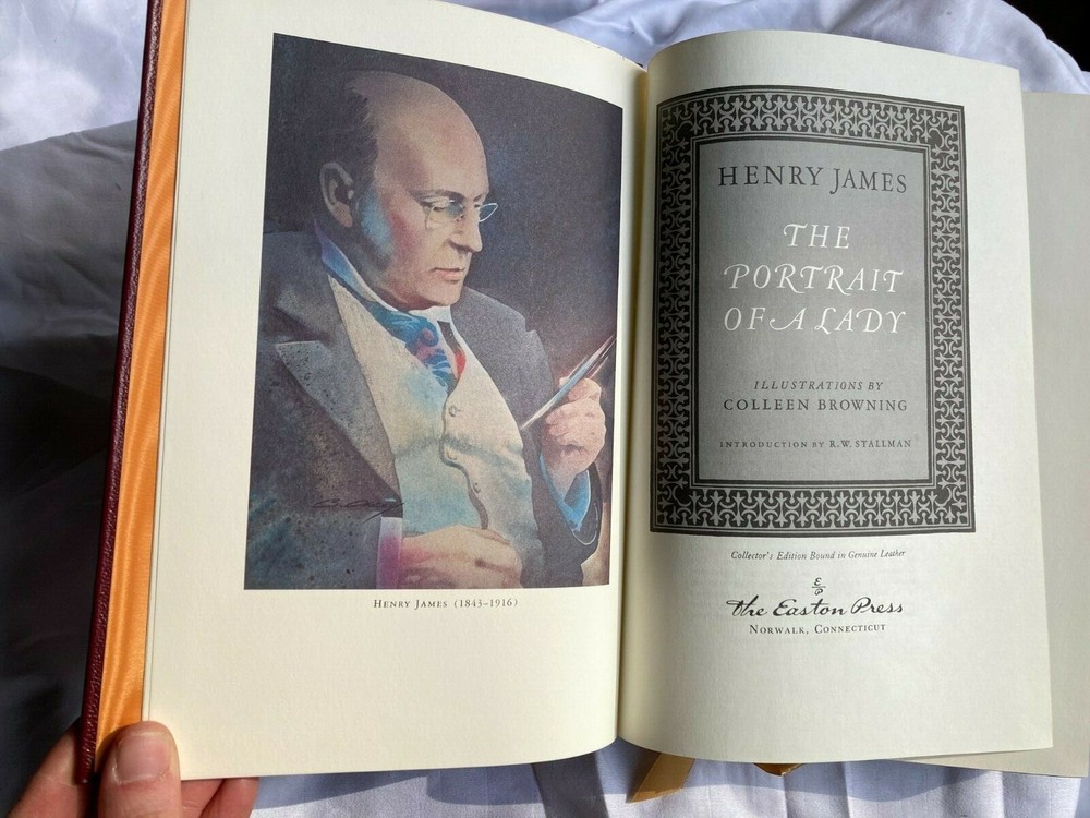Portrait of a Lady - Henry James Limited Edition Leather Bound Easton Press 1978 Easton Press 1978 Fine, Accented in 22kt gold, printed on archival paper with gilded edges, smyth sewing & concealed muslin joints. Bound In full leather with hubbed spines. There is a nameplate on the inside front cover, but it can easily be removed using any number of methods out on the internet. Here is one YouTube video for removing book plates: https://www.youtube.com/watch?v=hFhn6uRMhao. The gilded edges do have a few scratches on them, but not really noticeable. The book does not seem to have been opened very much at all (if ever). Please look at the photos for details about the condition of the book. 21-155