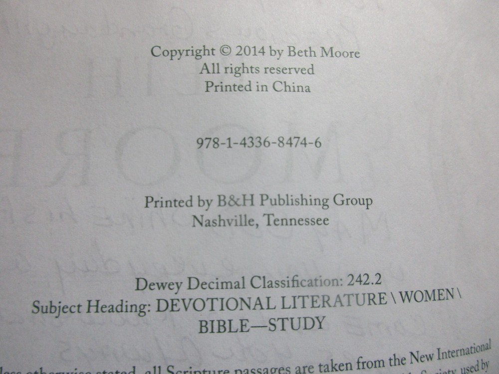 Portraits of Devotion from Beth Moore's Personal Reflection Series Faux Leather Bound with Ribbon Marker B & H Publishing 2014 Book is very good, but has notes and verses written on 2 cover pages. Remainder of book is clean. Looks new at first glance.