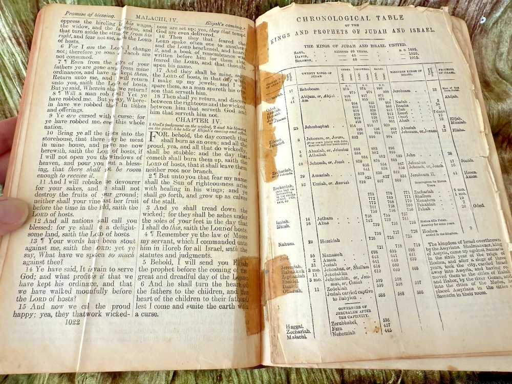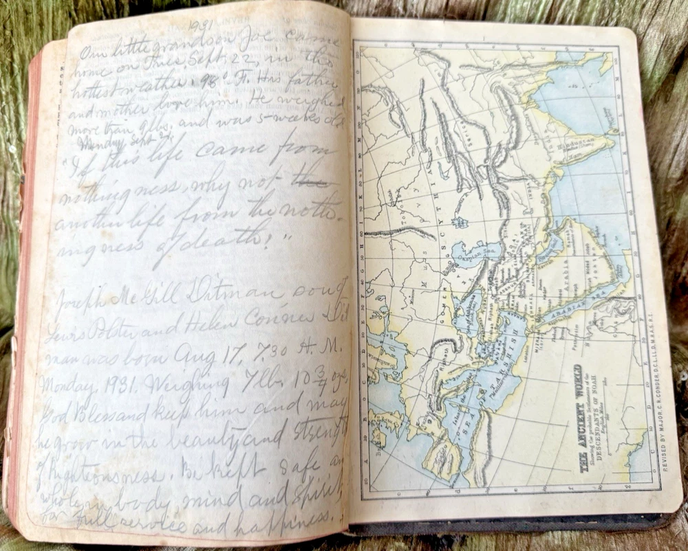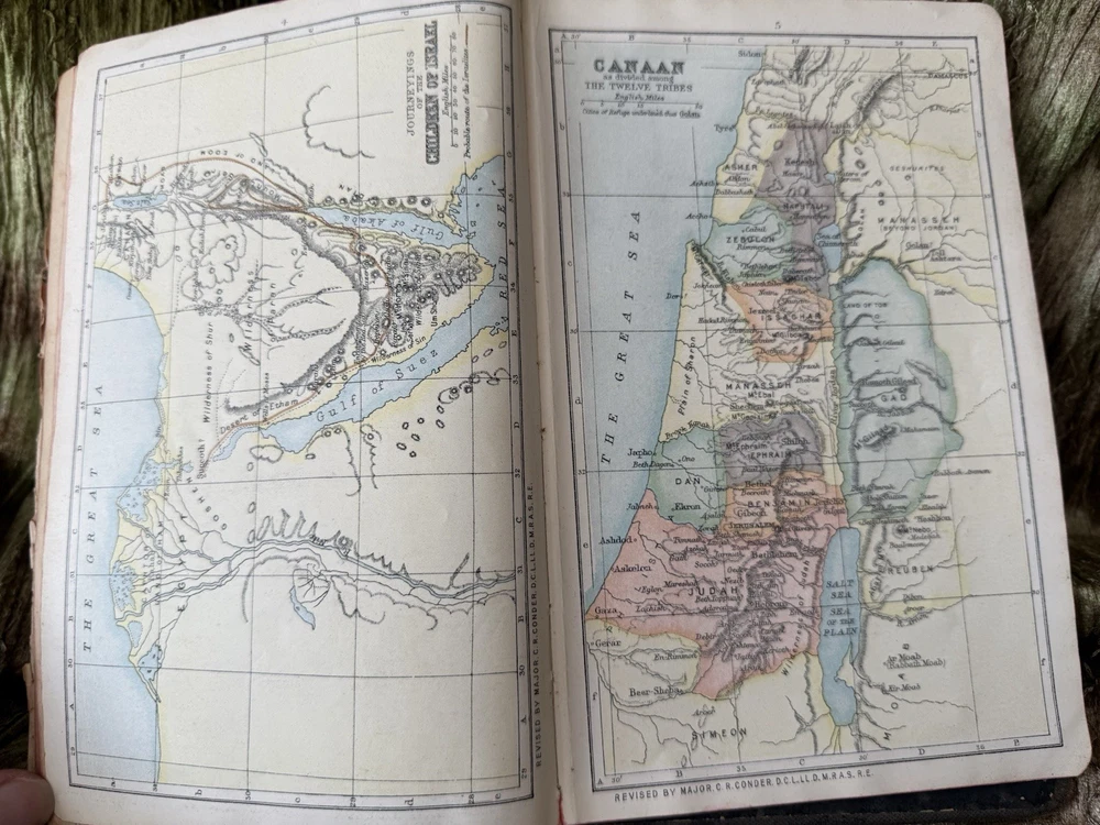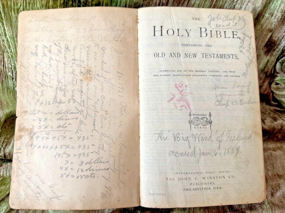 The product is a vintage 1911 Holy Bible from the International Bible Series, published by John C. Winston Co. in Philadelphia. It is a leather-bound book with color illustrated maps, making it a unique and collectible item for religious and spiritual enthusiasts. This Bible, printed in English, features special attributes such as illustrations and is considered an original edition from before 1912, as was the first dated handwritten note in the back cover, adding to its historical and cultural significance.
