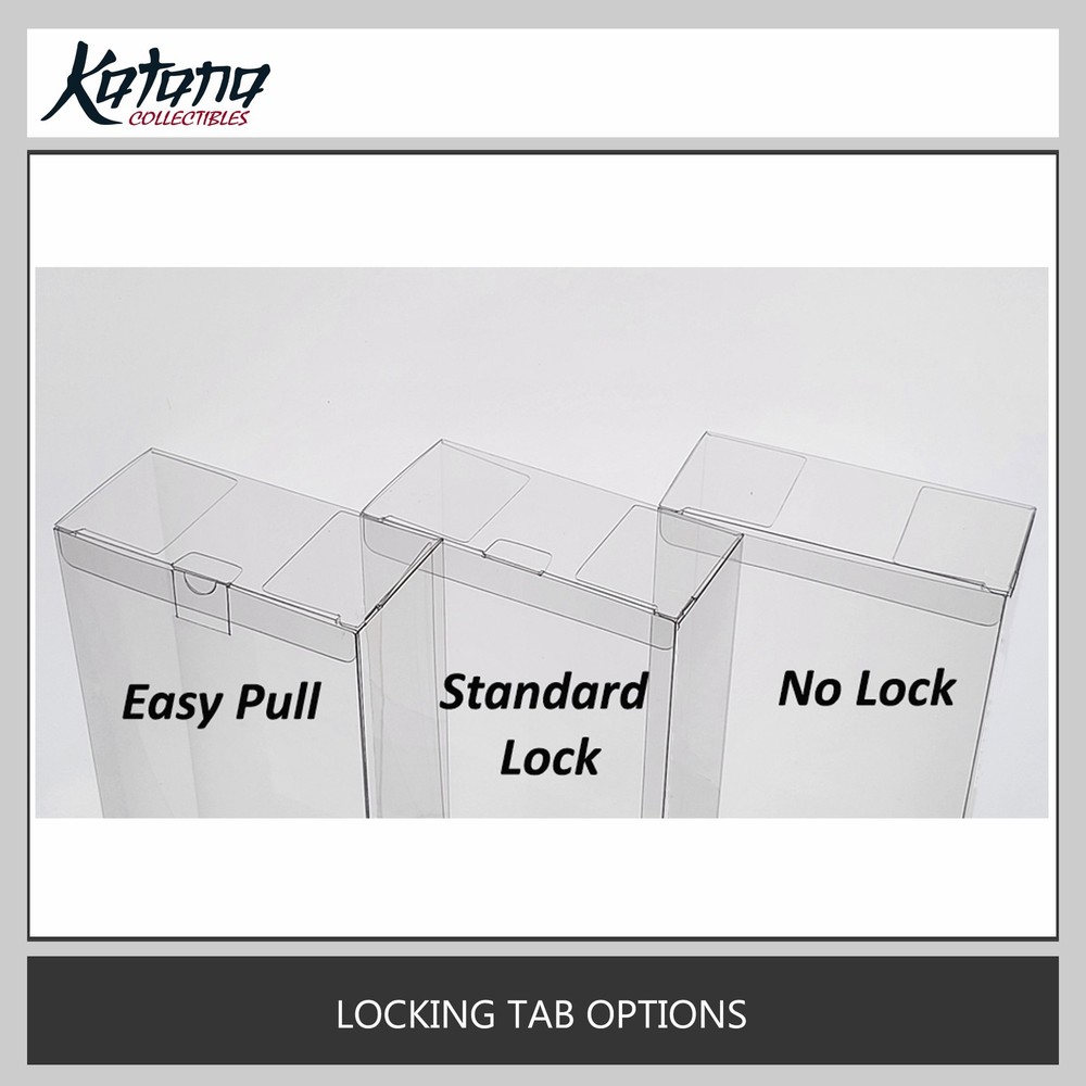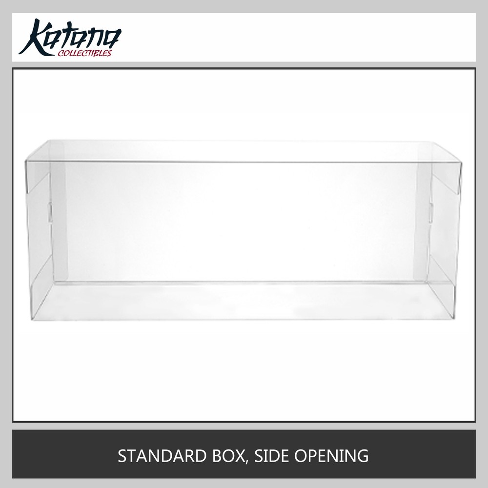 Premium Box Protector Product Highlights Perfect Fit : Designed to fit Standard Box - Side Opening Fit Box Size (L x H x D) :11.811" x 7.874" x 3.1496" (300 x 200 x 80 mm) Superior Protection : Guards against dust, grime, fingerprints, and UV damage Premium Material : Made from 0.5mm thick, high-grade PET with UV protection Crystal Clear : Removable protective film on both sides for pristine clarity Made in USA : Crafted to order for unmatched quality and customization options Key Features Standard Design : Simple design to accommodate most collectible Side Opening : Convenient access with opening flaps on the sides of the box Customizable Options : Style: GFL Design (Glue-Free) or Glued Design Hanger: Mini Hanger (not recommended for Glued Design), or No Hanger Locking Tab: Standard, Easy Pull, or No Tab Easy Assembly : Ships flat with simple folding instructions available on our website Secure Shipping : Packaged in sturdy envelopes with thick cardboard inserts to prevent damage Why Choose Our Box Protectors? Quality : Made from the best materials on the market for optimal protection Flexibility : Custom designs available for unique collectibles Expertise : Specialized in collectible protection to preserve your investments Convenience : Each protector individually labeled for easy identification Important Note on Dimensions and Fit Please read carefully before purchasing: The dimensions for this protector were provided by customers and have NOT been confirmed to fit by previous customer. These measurements are provided as a reference only. The actual fit may vary significantly. For guaranteed fit, we recommend ordering a custom-sized protector by providing your own measurements. There is no extra charge for custom sizes. We strongly recommend measuring your item carefully before placing your order. Please select your options carefully . As these items are custom-made to order, we cannot accept returns or exchanges if you select incorrect options or change your mind. If you need a specific fit tolerance, please consider ordering a custom-sized protector by providing your own measurements. How to Order Select your preferred options from the dropdown menus above. Add to cart and proceed to checkout. For custom sizes, please contact us directly with your specific measurements. Disclaimer: Picture is for reference only. You will receive 1 clear protector. Toy/Movie/Game/Object in the picture is not included. Preserve your collection's value with our premium box protectors – the ultimate protection for your prized collectibles!