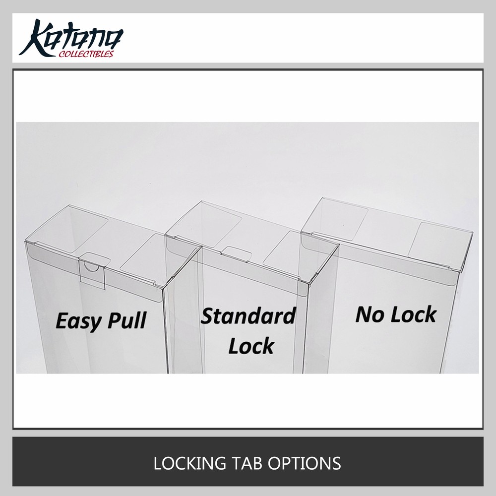 Premium Box Protector Product Highlights Perfect Fit : Designed to fit Standard Box - Top Opening Fit Box Size (L x H x D) :9.0157" x 21.2598" x 6.4961" (229 x 540 x 165 mm) Superior Protection : Guards against dust, grime, fingerprints, and UV damage Premium Material : Made from 0.5mm thick, high-grade PET with UV protection Crystal Clear : Removable protective film on both sides for pristine clarity Made in USA : Crafted to order for unmatched quality and customization options Key Features Standard Design : Simple design to accommodate most collectible Top Opening : Convenient access with opening flaps on the top and bottom of the box Customizable Options : Style: GFL Design (Glue-Free) or Glued Design Hanger: Full Size, Mini, or No Hanger Locking Tab: Standard, Easy Pull, or No Tab Easy Assembly : Ships flat with simple folding instructions available on our website Secure Shipping : Packaged in sturdy envelopes with thick cardboard inserts to prevent damage Why Choose Our Box Protectors? Quality : Made from the best materials on the market for optimal protection Flexibility : Custom designs available for unique collectibles Expertise : Specialized in collectible protection to preserve your investments Convenience : Each protector individually labeled for easy identification Important Note on Dimensions and Fit Please read carefully before purchasing: The dimensions for this protector were provided by customers and have NOT been confirmed to fit by previous customer. These measurements are provided as a reference only. The actual fit may vary significantly. For guaranteed fit, we recommend ordering a custom-sized protector by providing your own measurements. There is no extra charge for custom sizes. We strongly recommend measuring your item carefully before placing your order. Please select your options carefully . As these items are custom-made to order, we cannot accept returns or exchanges if you select incorrect options or change your mind. If you need a specific fit tolerance, please consider ordering a custom-sized protector by providing your own measurements. How to Order Select your preferred options from the dropdown menus above. Add to cart and proceed to checkout. For custom sizes, please contact us directly with your specific measurements. Disclaimer: Picture is for reference only. You will receive 1 clear protector. Toy/Movie/Game/Object in the picture is not included. Preserve your collection's value with our premium box protectors – the ultimate protection for your prized collectibles!