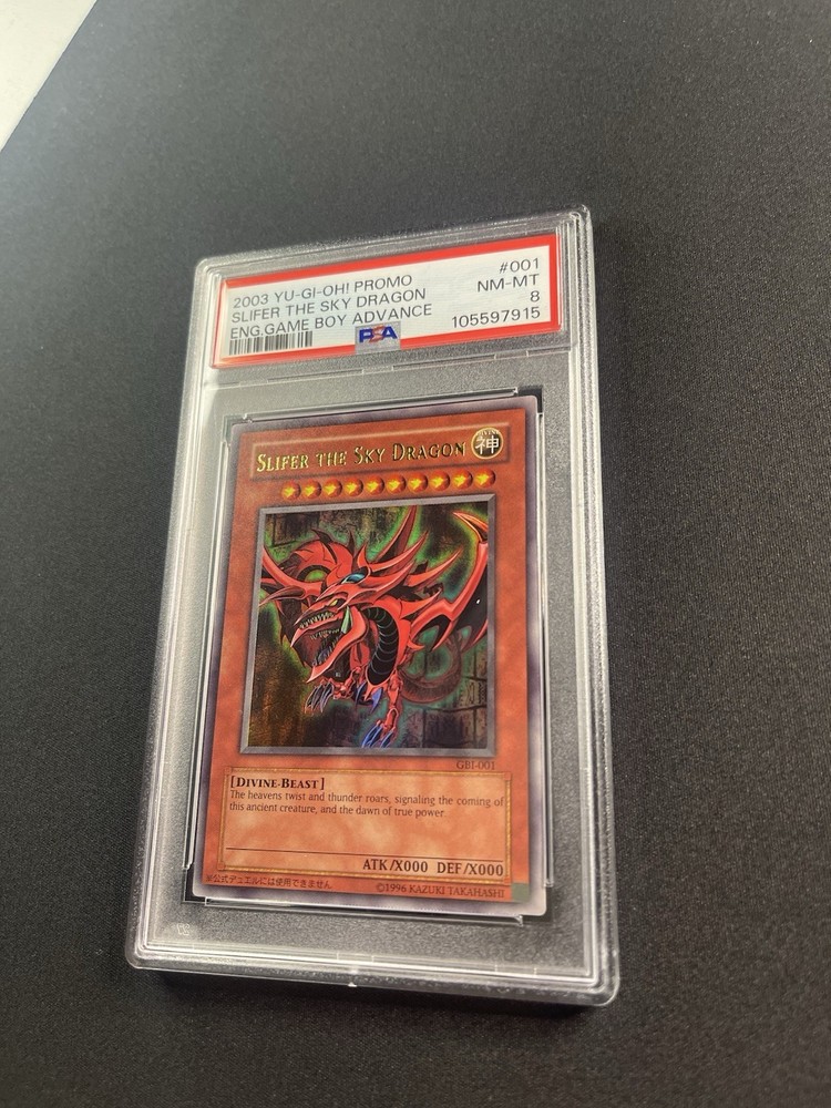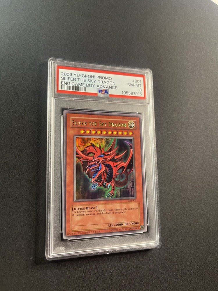 Elevate your Yu-Gi-Oh! TCG collection with the iconic Slifer The Sky Dragon card, a must-have for enthusiasts and competitive players alike. This Ultra Rare card is a staple in any Egyptain God card lineup, bringing both power and prestige to your deck. With a PSA 8 grading, this Slifer card showcases a high level of quality and preservation, making it a standout addition to any collection. The distinct artwork and strategic importance of this card make it a prized possession for those familiar with the lore and mechanics of the Yu-Gi-Oh! TCG.