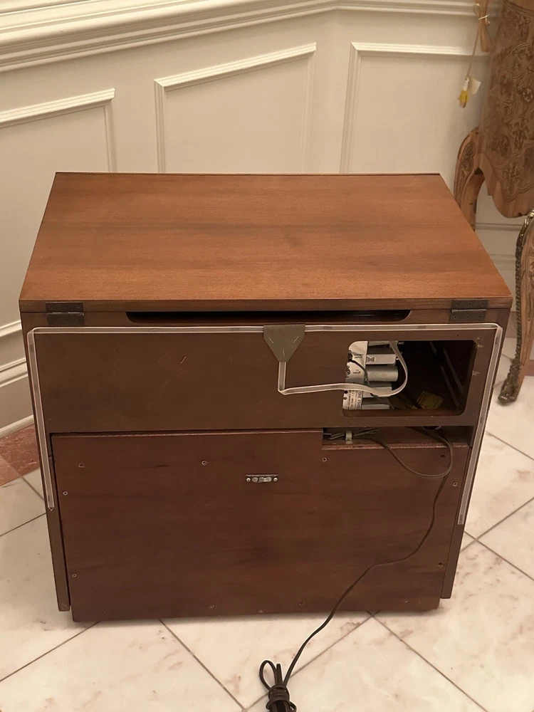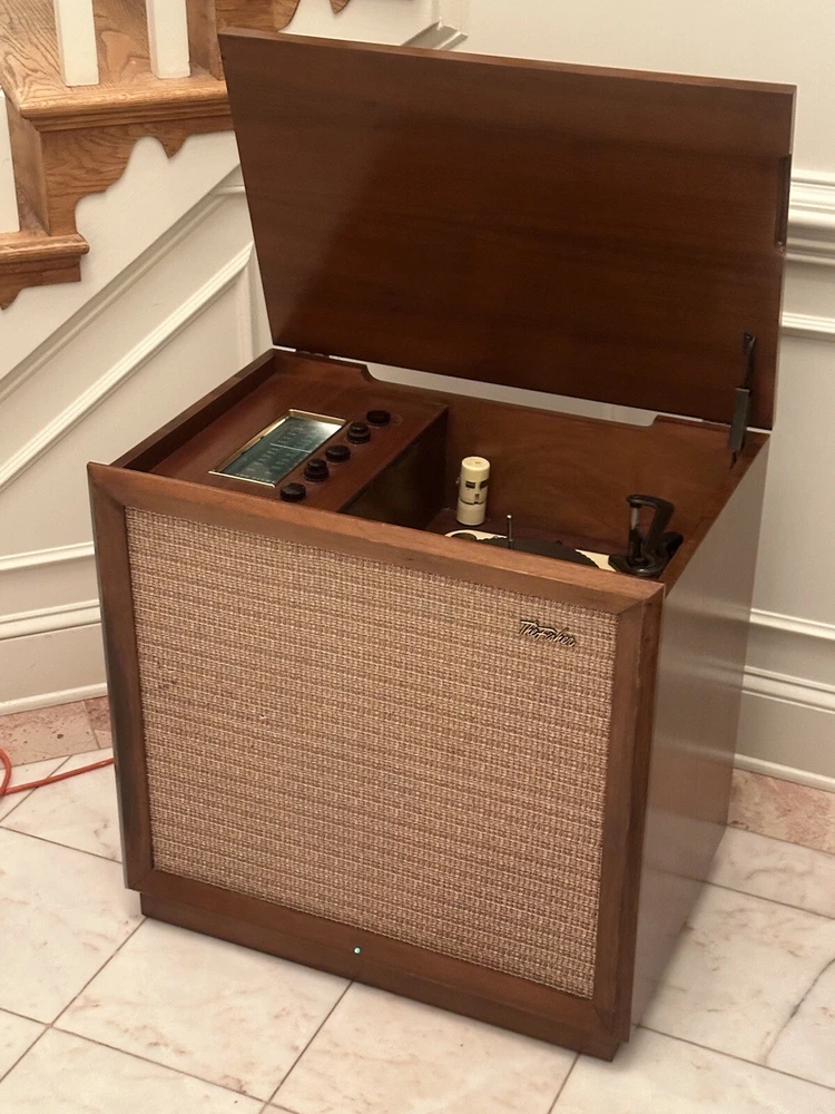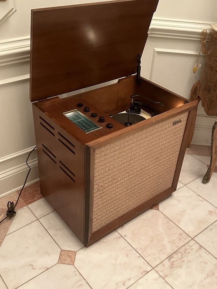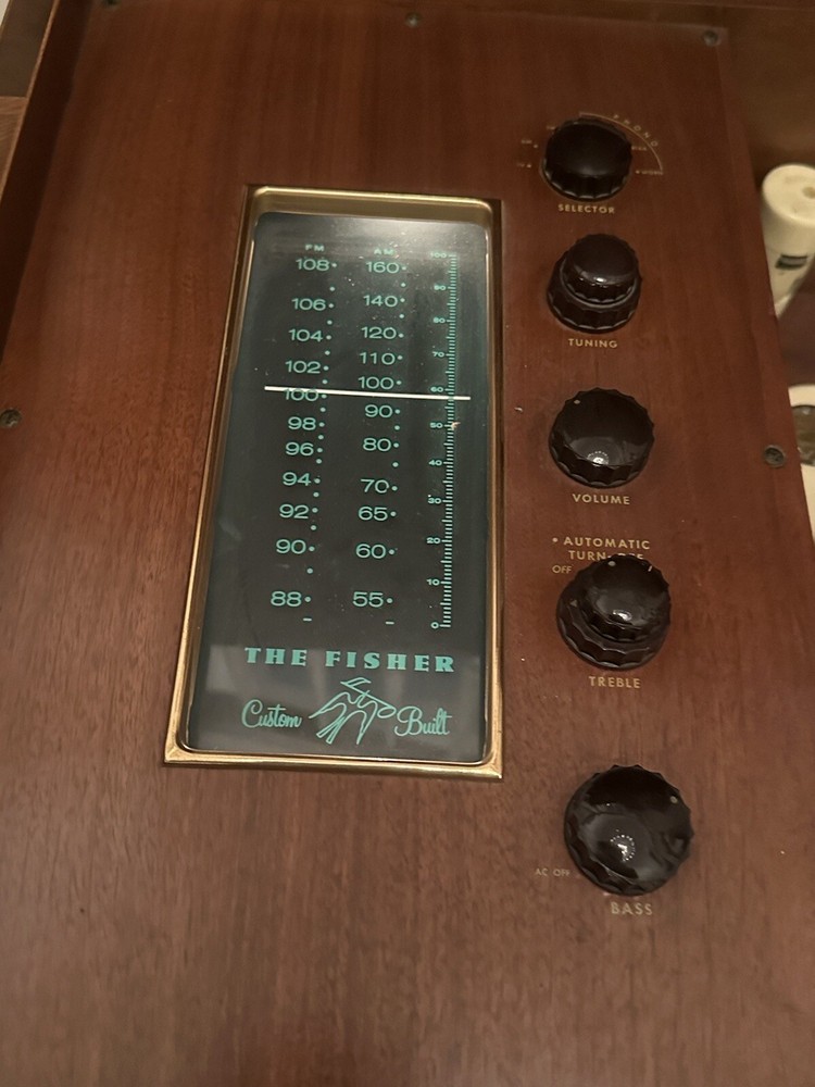 This is a rare find for vintage fisher electronics enthusiasts! A 1958 Fisher 61 console with tubes is up for grabs. This mono console is a true gem for collectors, and it works on fm only , I was not able to hear AM station or sound from the turntable the controls need cleaning as they scratchy noise when moved, the quality garrad RC 121 record changer need service lubrication as it did not move when tested it . The cartridge installed is a quality GE VR Mono with 78 and 33 rpm setting the stylus tips on both 78 and 33 rpm setting are in excellent condition and examined under magnification . Since it the console need service to sound the best it being sold It has been sold as-is for parts or restoration . Apart from needing service it in otherwise all orginal condition , all complete with all tubes included , manual for the turntable and wood finish in excellent condition as seen In the pics of the actual unit you will be getting . It would would make a great addition of any fisher vintage tube consoles collector and also a great addition to any vintage audio or video collection. The console is branded with the Fisher logo, and is sure to impress any collector with its unique features. Don't miss out on the chance to own a piece of vintage electronics history! Quality made in USA in 1958 . It has a suggested list price of $359 in 1958 which was lot of money back them. The beautiful solid wood cabinet and finished radiates QUALITY and old world charm not available with new stuff ! Once serviced I can just imagine how AWESOME! It will sound ! Quality made in USA. Due to weight and size and risk of shipping damage local pickup is the best way to take it home . I will work with your schedule to arrive at a mutual satisfactory time and day within a reasonable time frame to take delivery once you buy it . Thanks . The dimensions are 27.5” w x 18.5” d x 26.5” h. YOU WILL LOVE ❤️ IT! Note: NICE! FRIENDLY! AND SERIOUS BUYERS ONLY! NO! SCAMMERS PLEASE! no returns or refunds , this is a vintage item. Thank for your purchase and for your business both of which are greatly appreciated . You are a valued customer.