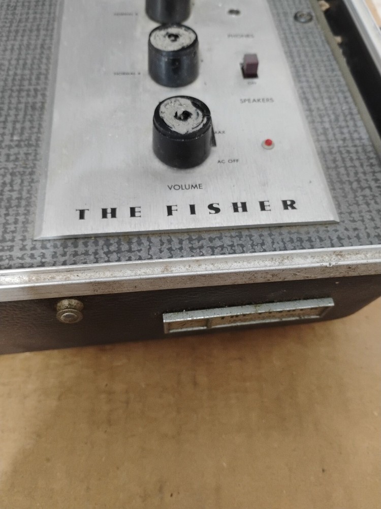 No plug or speaker wires unable to test everything else in good condition For those who appreciate vintage audio equipment, this rare Fisher portable stereo record player turntable with speakers is a must-have. Made in the United States, this piece of audio history is sure to impress any collector or music enthusiast. The turntable is in excellent working order and produces a warm, nostalgic sound that is perfect for listening to your favorite vinyl records. The speakers are powerful and produce a clear sound that is sure to fill any room. This is a one-of-a-kind piece of audio equipment that is sure to enhance any listening experience.