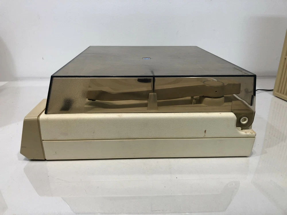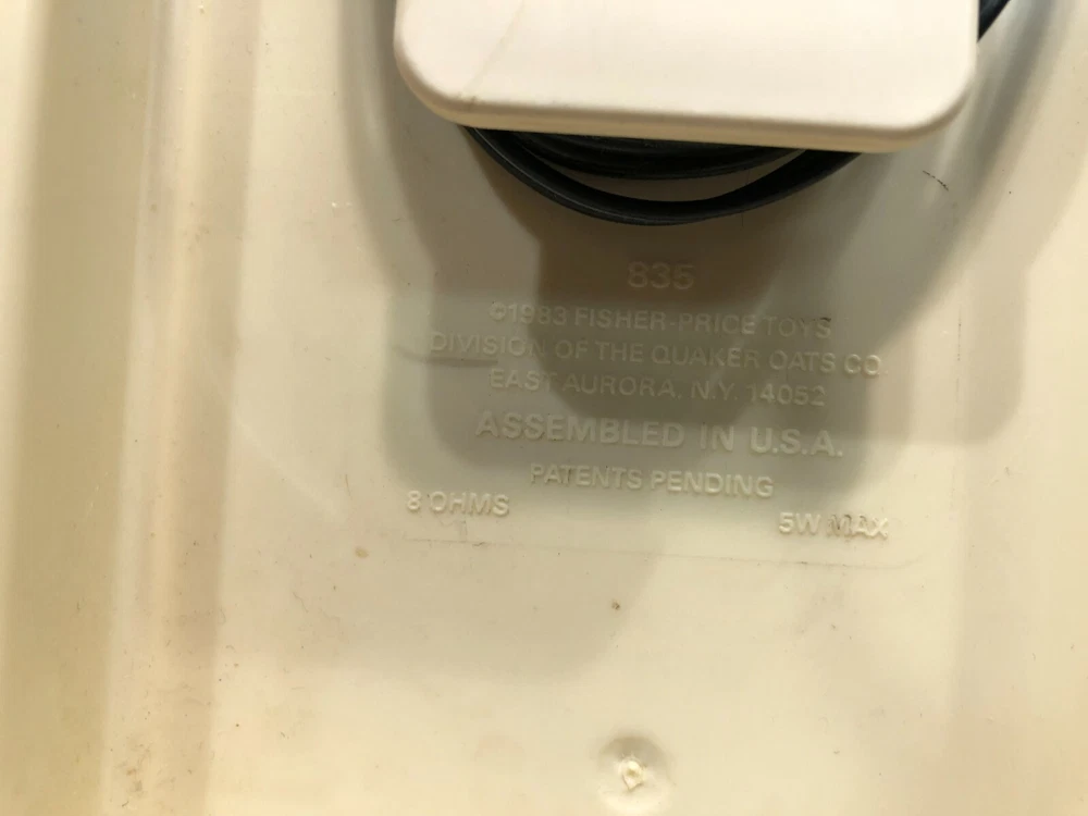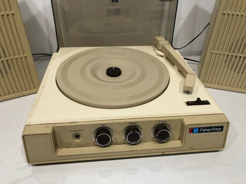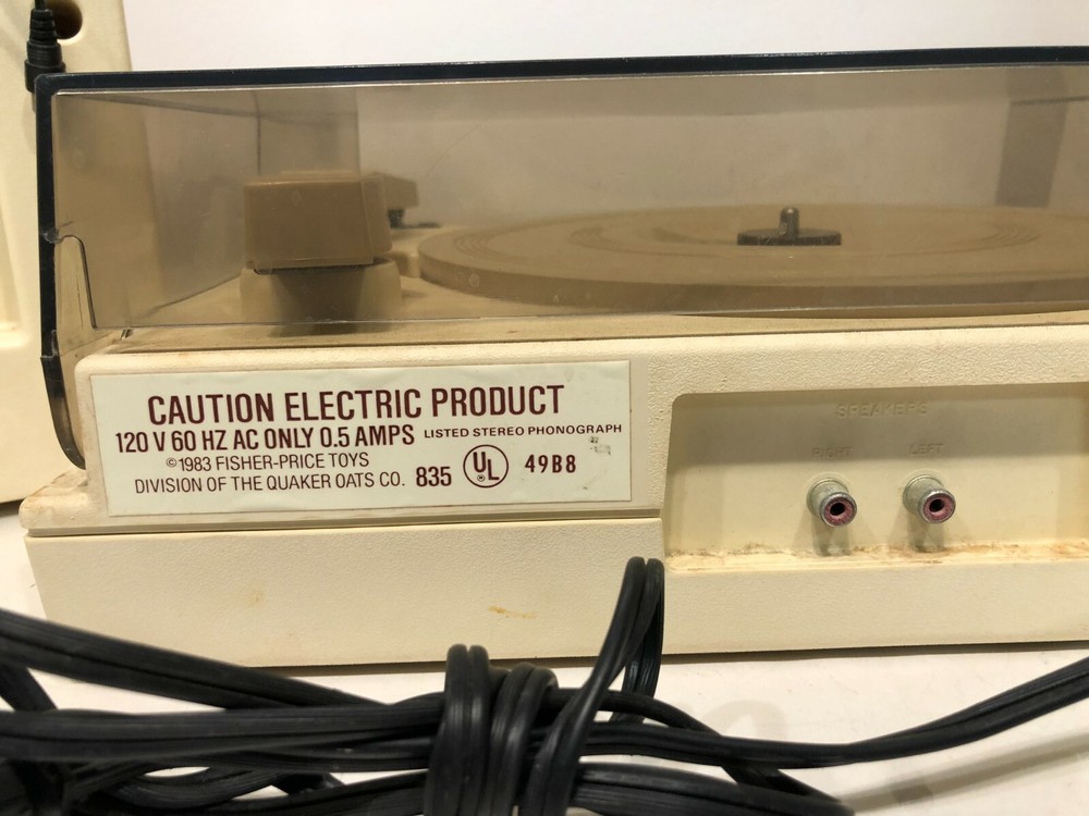 For Sale: Used RARE Vintage 1983 FISHER PRICE 835 Toy RECORD LP Vinyl PLAYER w/ SPEAKERS In OK used physical condition. Scratches, scuffs, marks from normal use/wear. Tested/works - sound quality is not very good - turntable knobs when adjusted you hear a lot of scratchy noise through the speakers - but once set, it goes away and you can hear the record play. May just need some adjustment/cleaning - SOLD AS-IS. Records not included. Please refer to pictures for reference. Thanks!!